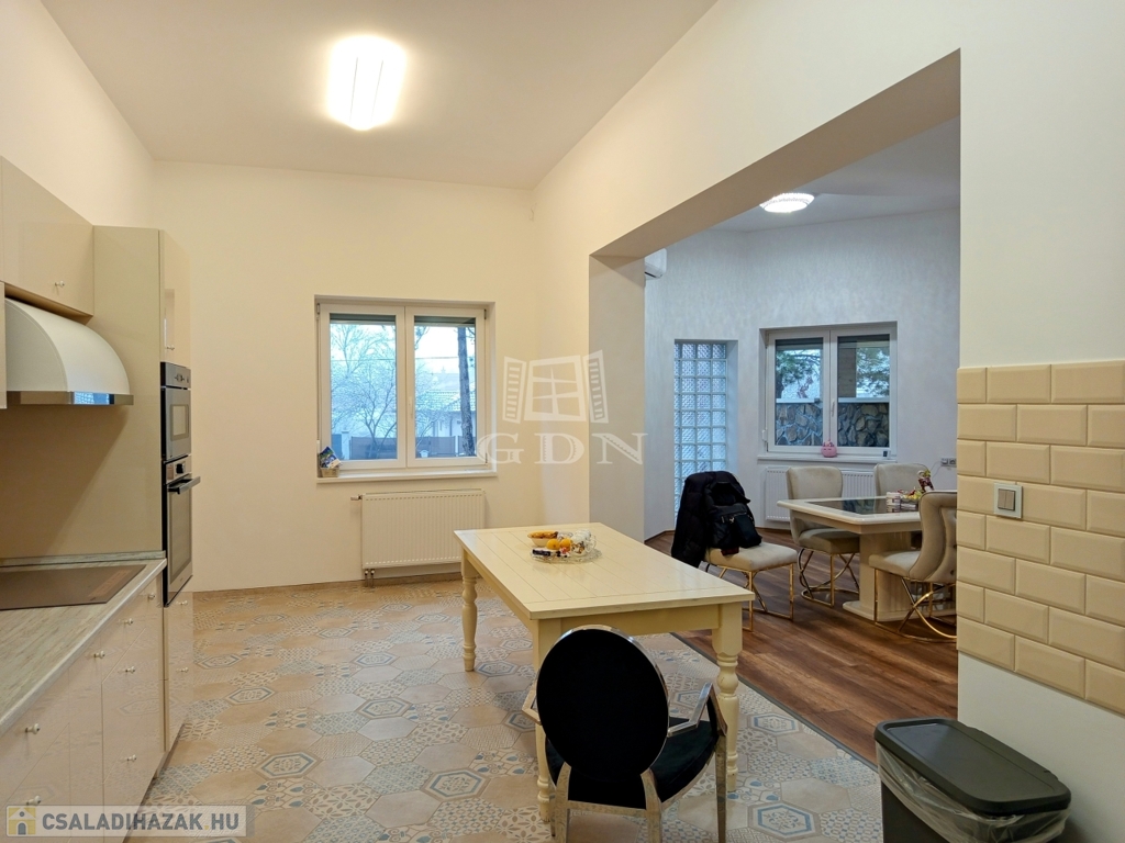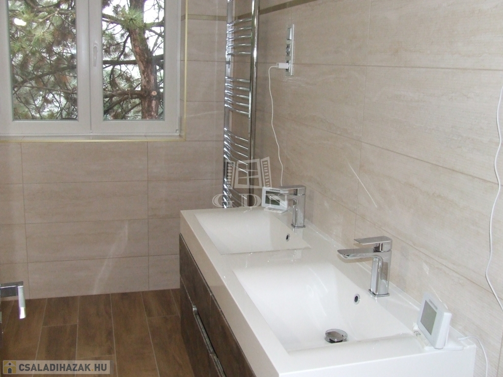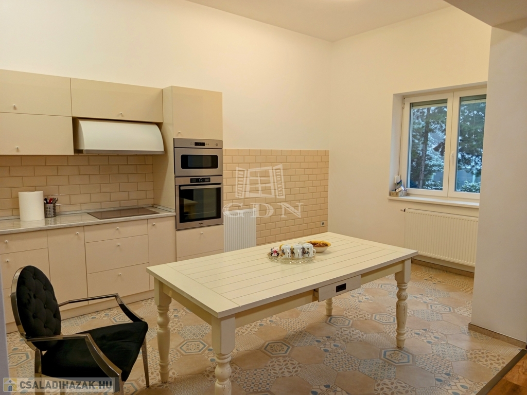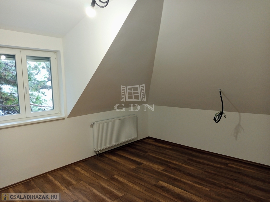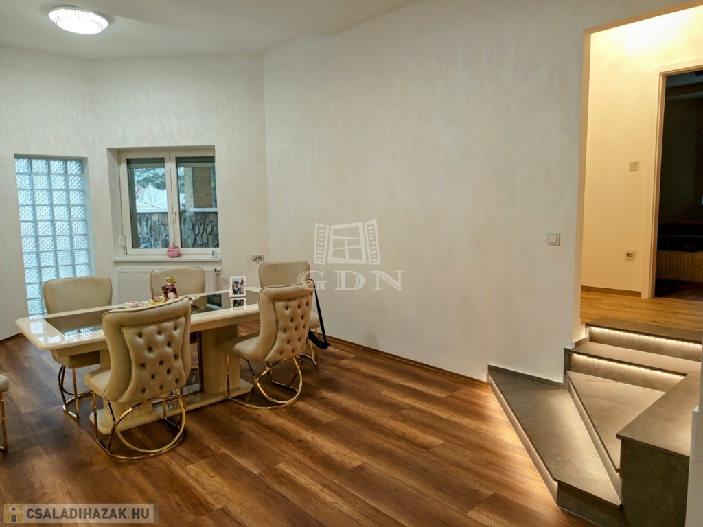 ÉRD Parkváros-Fenyves csendes részén ELADÓ egy teljesen felújított 195 négyzetméteres, három szintes családi ház! Az alagsorban , kétállású garázs és az épület gépészete található 39,67 nm-en. Elektromos töltésrendszer, két gépjármű részére, a bejárati ajtó elektromos, távirányítóval működik. A garázsba megérkezve lépcső visz fel a földszintre. Ezen a szinten egy zuhanyozós fürdő szoba + WC 6,4 nm, egy 16,88 nm szoba amelyből egy kádas, WC fürdő szoba 5,83 nm, nyílik. A nappali 28,11 nm, melyből a konyhába és az étkezőbe 20,83 nm es jutunk. Ezen a szinten még található az előszoba 5,08 nm, közlekedő 6,97 nm, éléskamra 2,86 nm és egy gardrób 2,15 nm-es helység.
