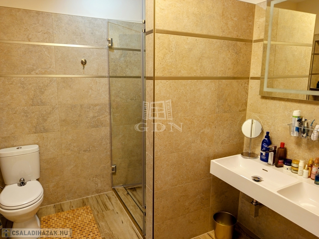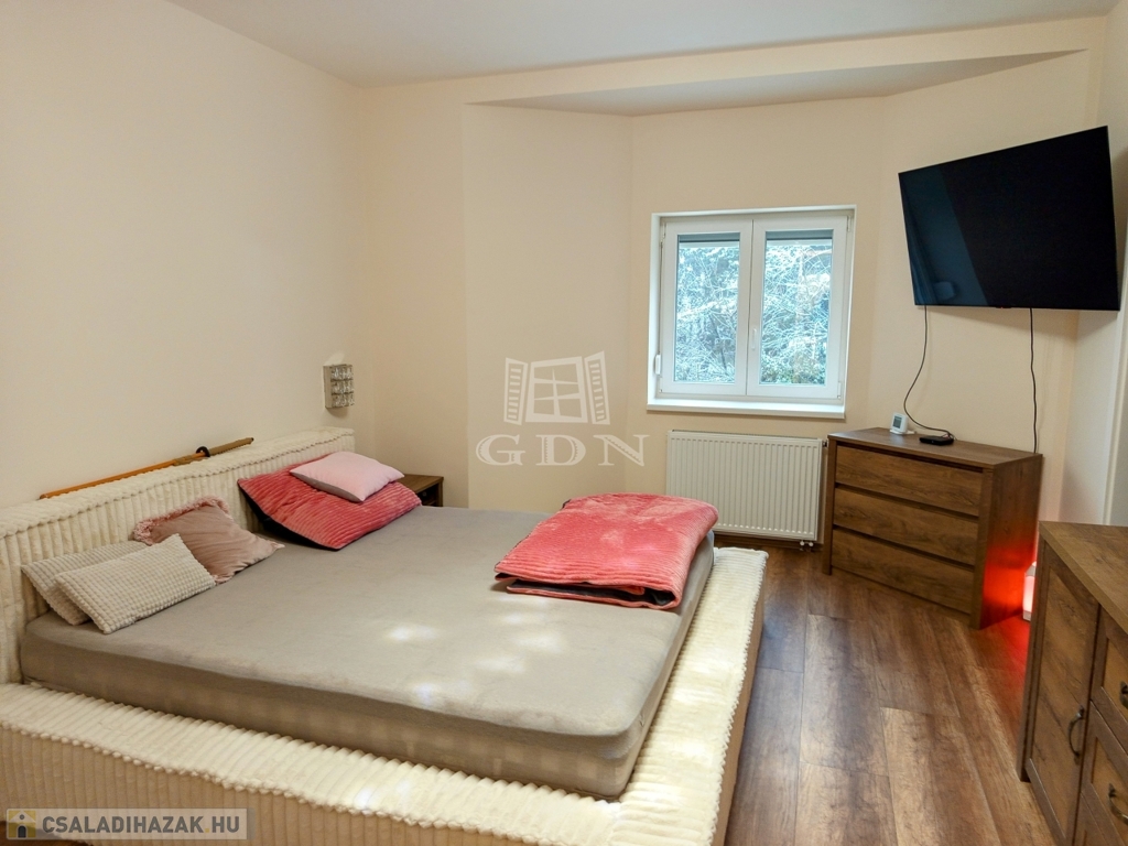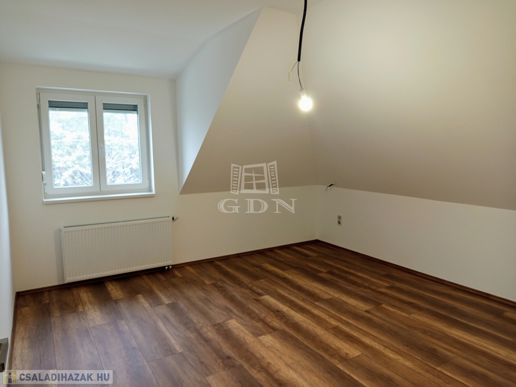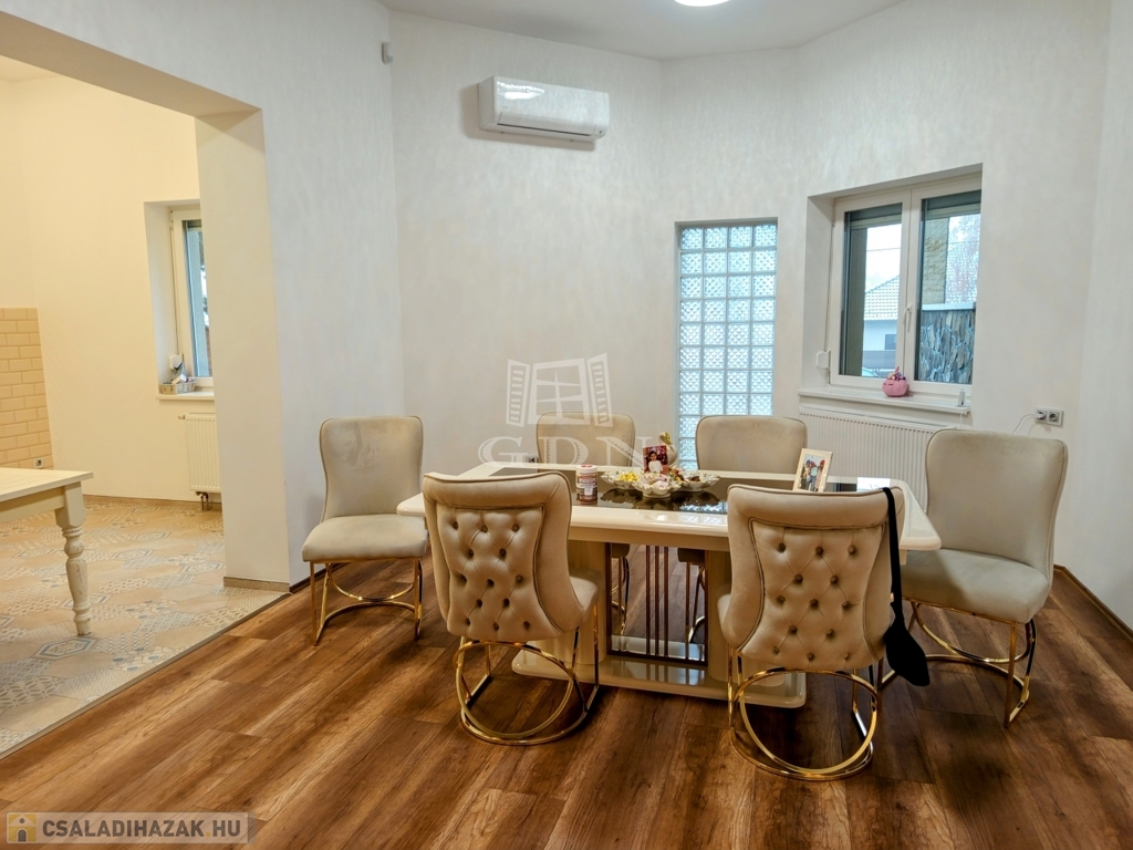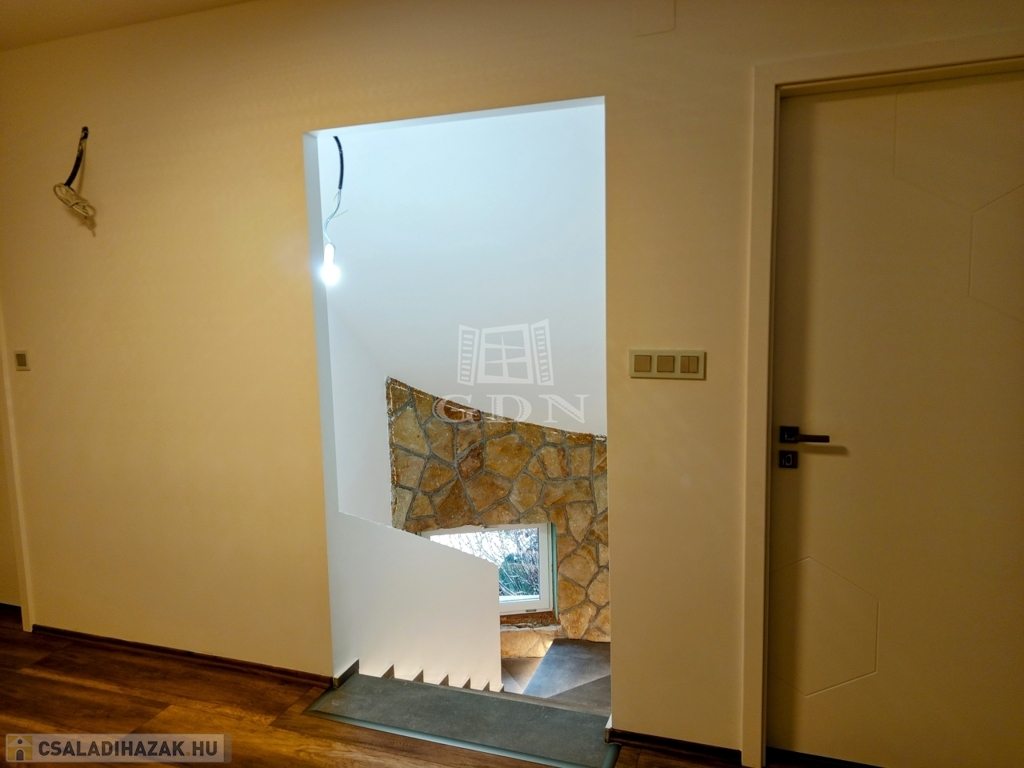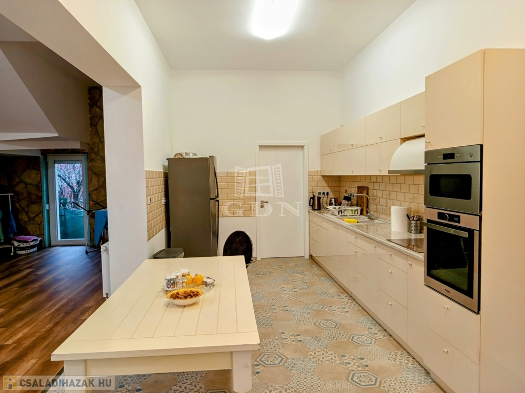 ÉRD Parkváros-Fenyves csendes részén ELADÓ egy teljesen felújított 195 négyzetméteres, három szintes családi ház! Az alagsorban , kétállású garázs és az épület gépészete található 39,67 nm-en. Elektromos töltésrendszer, két gépjármű részére, a bejárati ajtó elektromos, távirányítóval működik. A garázsba megérkezve lépcső visz fel a földszintre. Ezen a szinten egy zuhanyozós fürdő szoba + WC 6,4 nm, egy 16,88 nm szoba amelyből egy kádas, WC fürdő szoba 5,83 nm, nyílik. A nappali 28,11 nm, melyből a konyhába és az étkezőbe 20,83 nm es jutunk. Ezen a szinten még található az előszoba 5,08 nm, közlekedő 6,97 nm, éléskamra 2,86 nm és egy gardrób 2,15 nm-es helység.