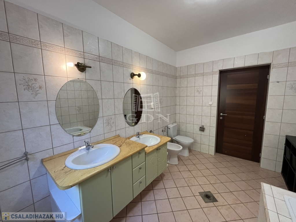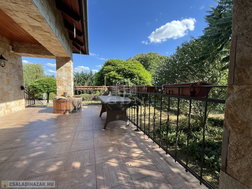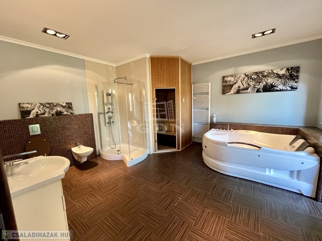 Kivételes lehetőséget kínálunk Érd legkeresettebb részén: egy önálló, 240 m²-es családi házat, amely egy 1300 m²-es parkosított telken helyezkedik el, tele extra kényelmi funkciókkal: 30 m²-es medence, szauna (infra- és finnszauna), jakuzzi, óriási gardrób szoba, fedett terasz, beépített szekrények, valamint külön szülői lakrész intim terasszal és fürdővel.
