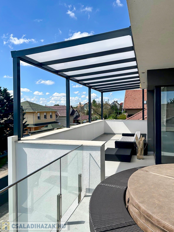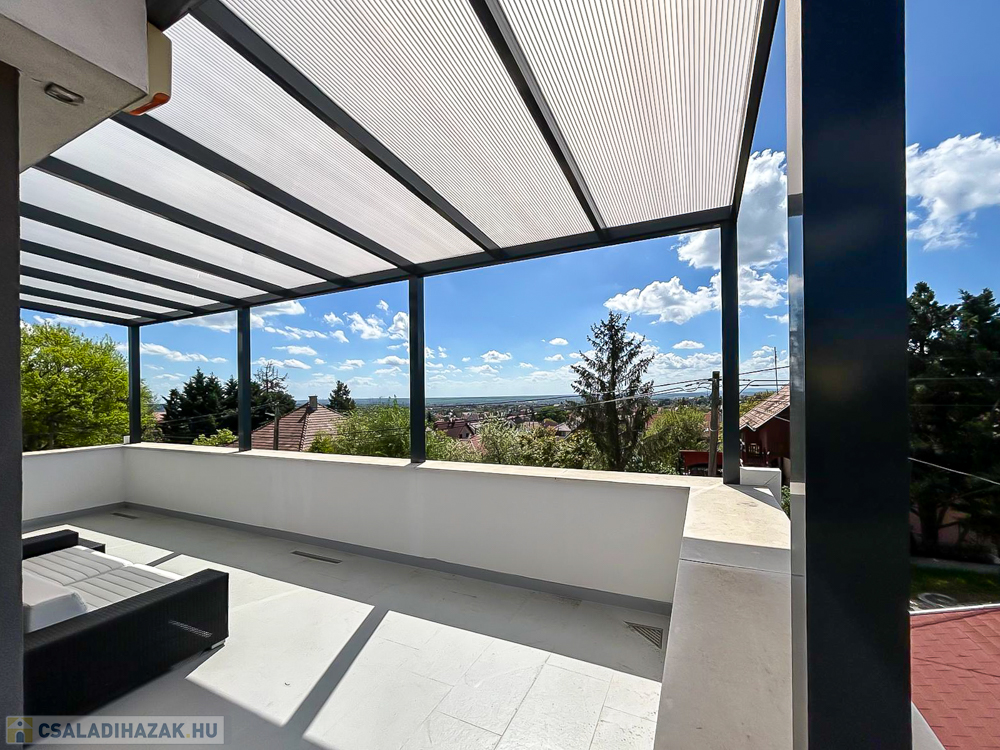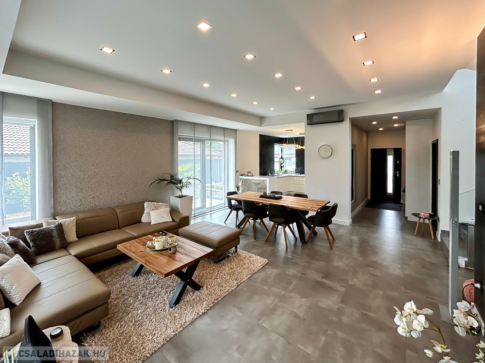Az újszerű állapotban lévő ház nettó alapterülete 176 nm, melyből a lakótér 140 m2 és nappali+ három háló+ 2 fürdőszoba elrendezéssel. A házat körül ölelő teraszok, összesen 160 m2-el növelik meg az életteret és jórészt fedettek is.