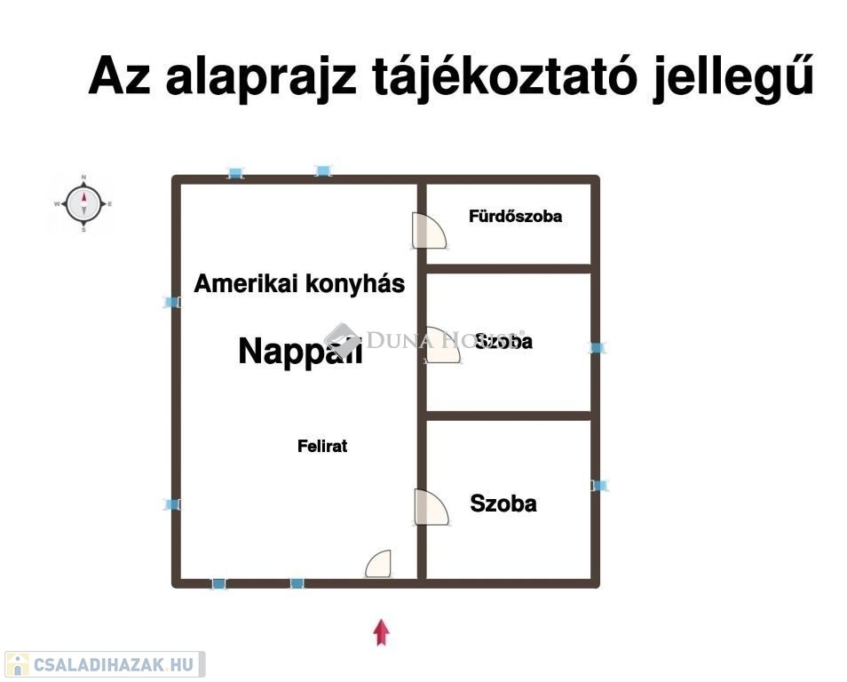 Elosztás: 2 hálószoba, tágas nappali, amerikai konyha