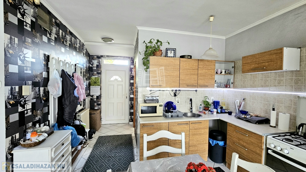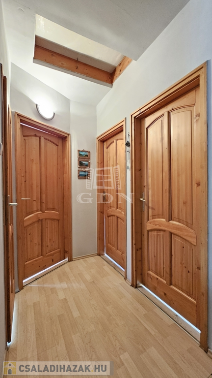 A ház 30-as téglából épült, 10 cm szigeteléssel. Fűtést és melegvizet gázcirkó kazán biztosítja.