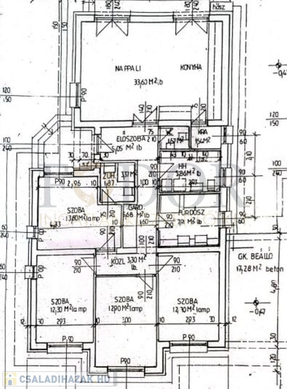 - 4 hálószoba, 2 fürdőszoba, tágas, napfényes amerikai konyhás nappali
