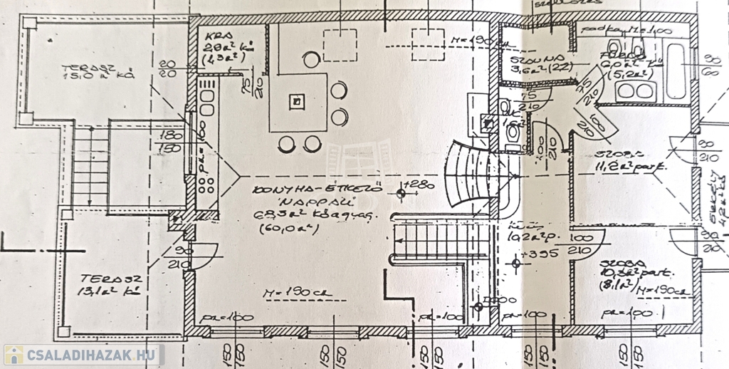 - félszuterén rész, külön bejárattal: előtér, szoba, konyha nappalival, fürdőszoba.