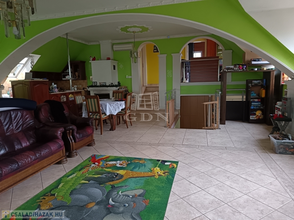 Az épület alkalmas 2 generáció együttélésére, a 2 konyha, 3 fürdőszoba, és 6 szoba felosztásnak köszönhetően. Két külön bejárattal bír. Különálló kerti tárolók. Fedett kocsibeálló, és garázs is rendelkezésre áll.