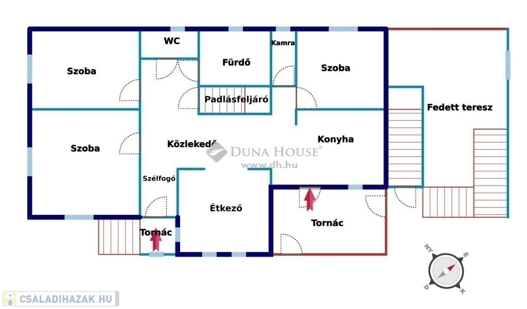 - Főépület: Kétszintes családi ház, két különálló lakrésszel