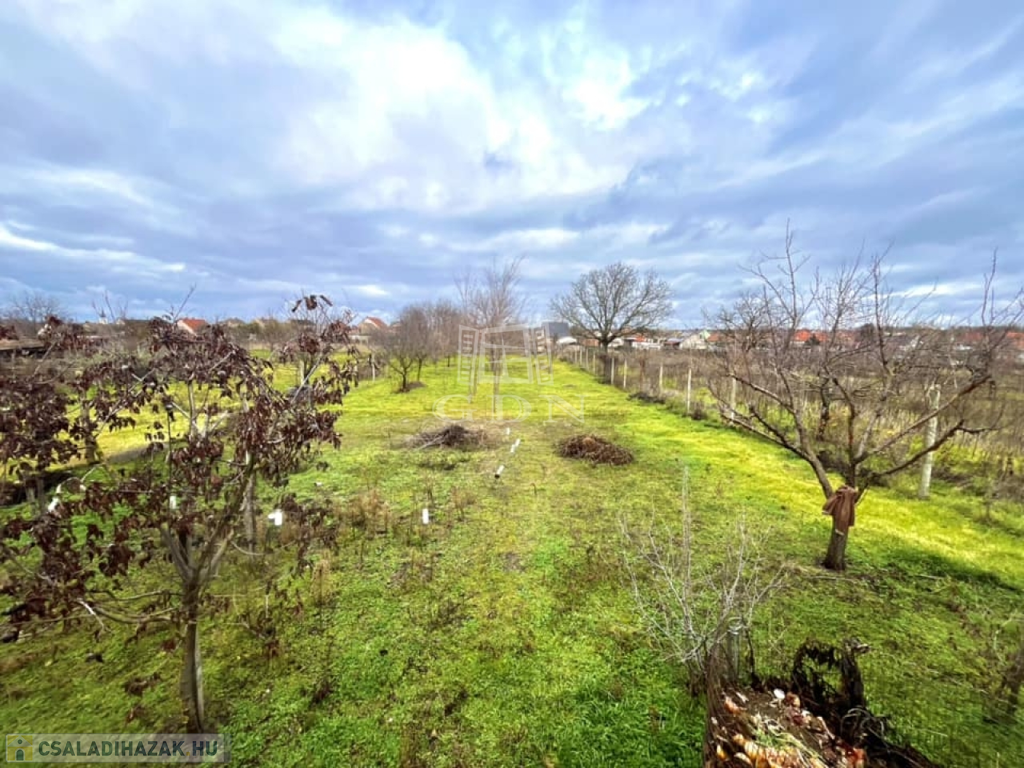 -veteményes kert, akácfák a telek végében