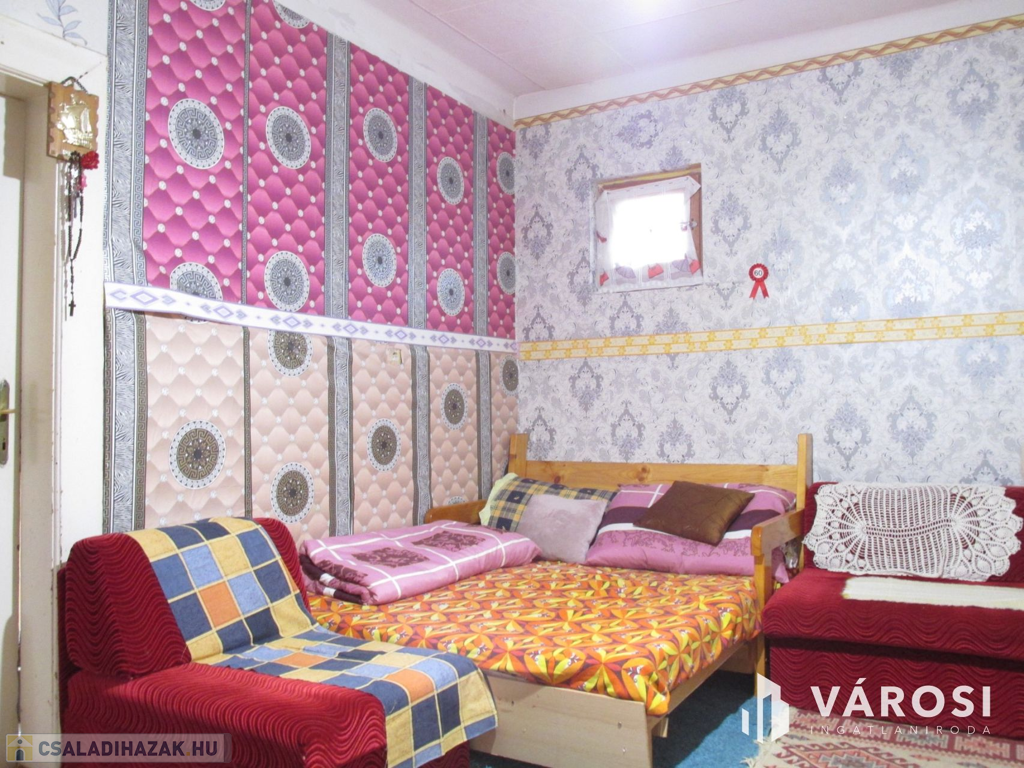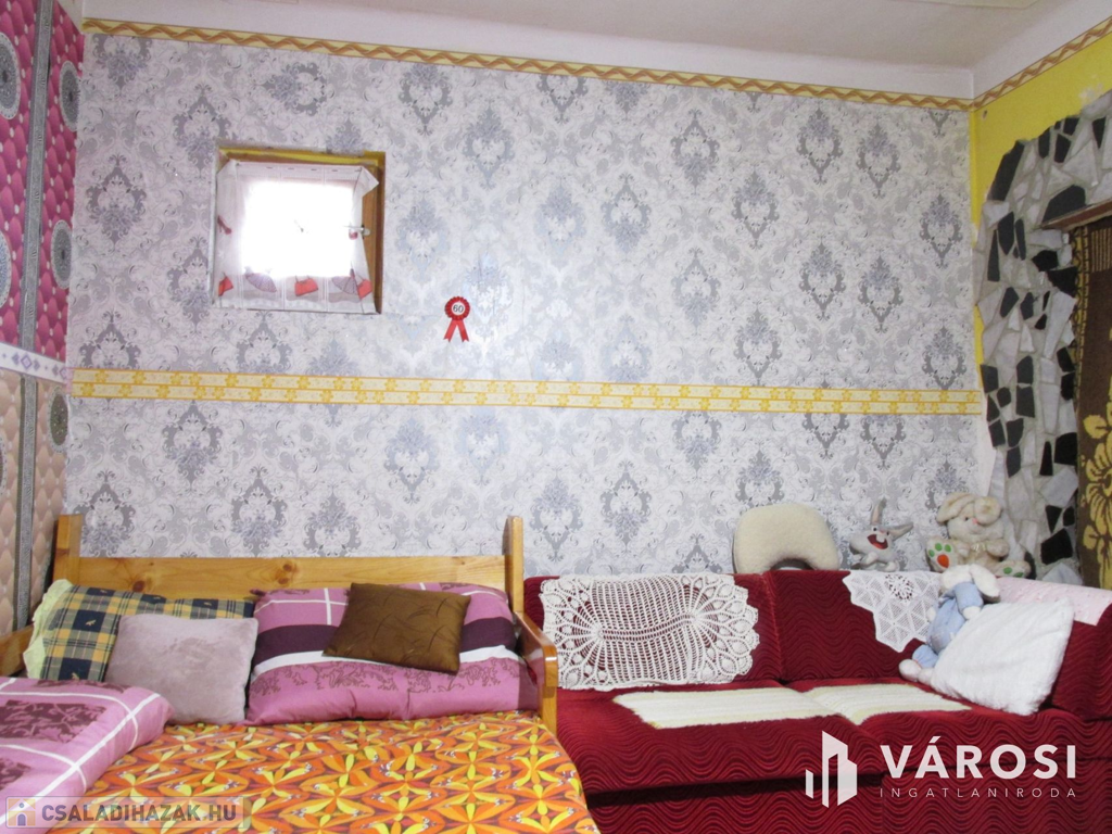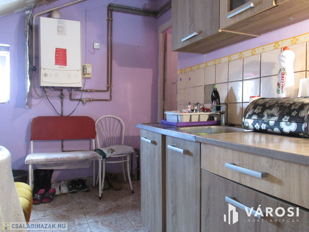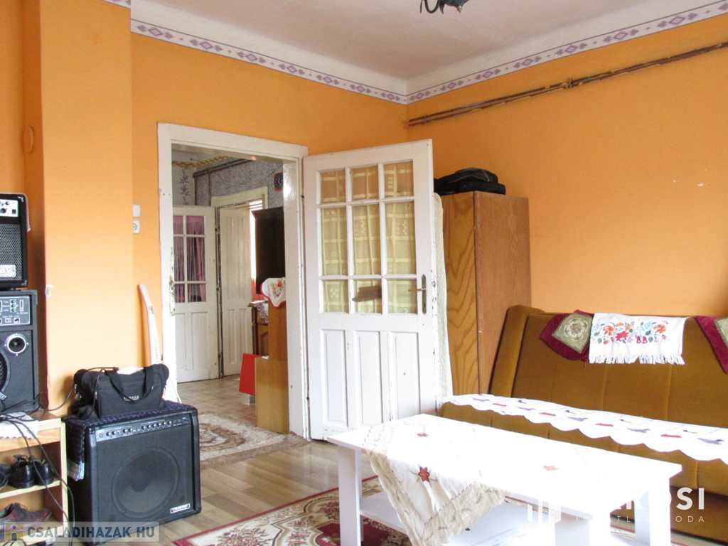 A házba belépve egy hosszú, zárt verandán találjuk magunkat. Az ingatlan további helyiségei: három egymás mellett lévő szoba, fürdőszoba WC-vel egyben és konyha. Az otthon elrendezése igen kedvező, ugyanis a verandáról a középső szobába van bejárat, így ez nappaliként használható és az innét nyíló két szoba, mindenkinek megteremti a privát szférát. A fűtésről gázcirkó gondoskodik radiátorok hőleadásával. A padló az egész ingatlanban pár éve kapott új hideg- és meleg burkolatot. A bejárat előtt található egy kertkapcsolatos terasz, ahol nyugalomban fogyaszthatja a reggeli kávéját a napra felkészülve, vagy egy fárasztó nap után kiszellőztetheti a fejét. A telek gondozott állapotban van, mérete 1424 m², ahol fúrt kút is található, mely segíthet a kert gondozásában vagy a medencéje feltöltésében. Udvari gépjárműbeállási lehetőség biztosítja autója biztonságos elhelyezését. Az udvarban van egy 14 m²-es melléképület, amely két tárolóhelyiségből áll, raktározási célokra vagy akár hobbihelyiségként is hasznosítható.