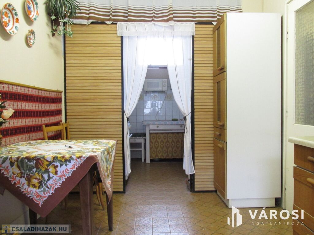 Ez a 130 m²-es, egyszintes, családi ház ideális lehetőséget kínál mindazok számára, akik nyugodt környezetben, mégis kiváló közlekedési feltételek mellett szeretnének élni. Az ingatlanban három tágas szoba, egy nappali, egy spejz egy konyha étkezővel, valamint külön fürdő és WC található.