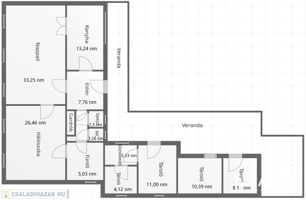 A melléképület egybe lett építve a főépülettel, amely négy tárolóhelyiséget tartalmaz külön bejáratokkal, ezek praktikus megoldást nyújtanak kerti szerszámok és különböző eszközök elhelyezésére. Szükség esetén itt kialakítható egy újabb lakrész.