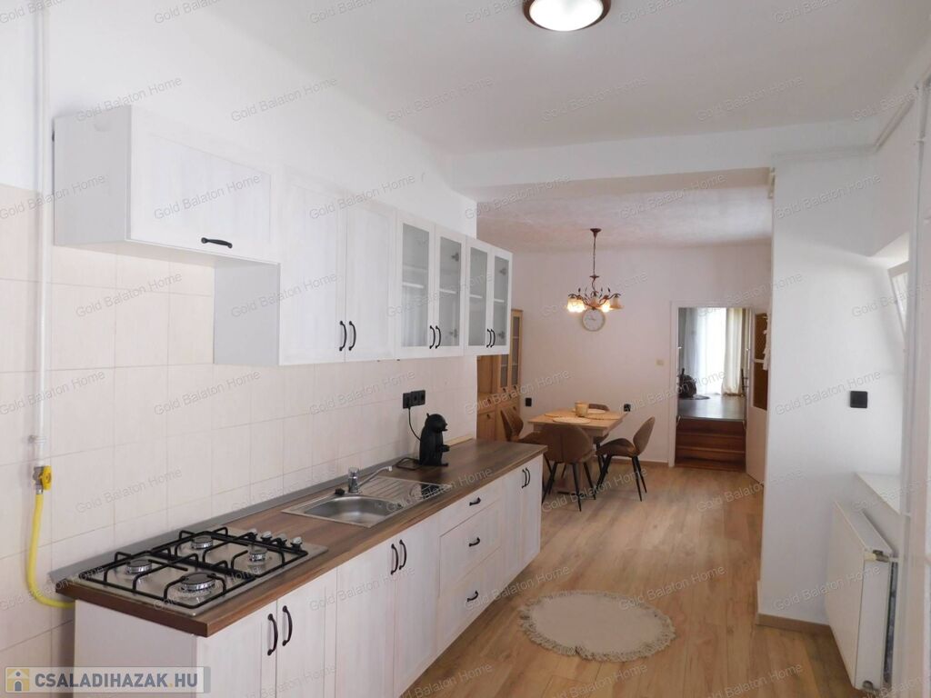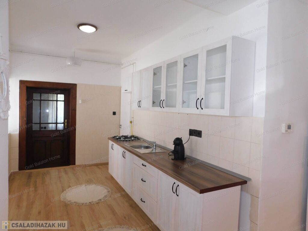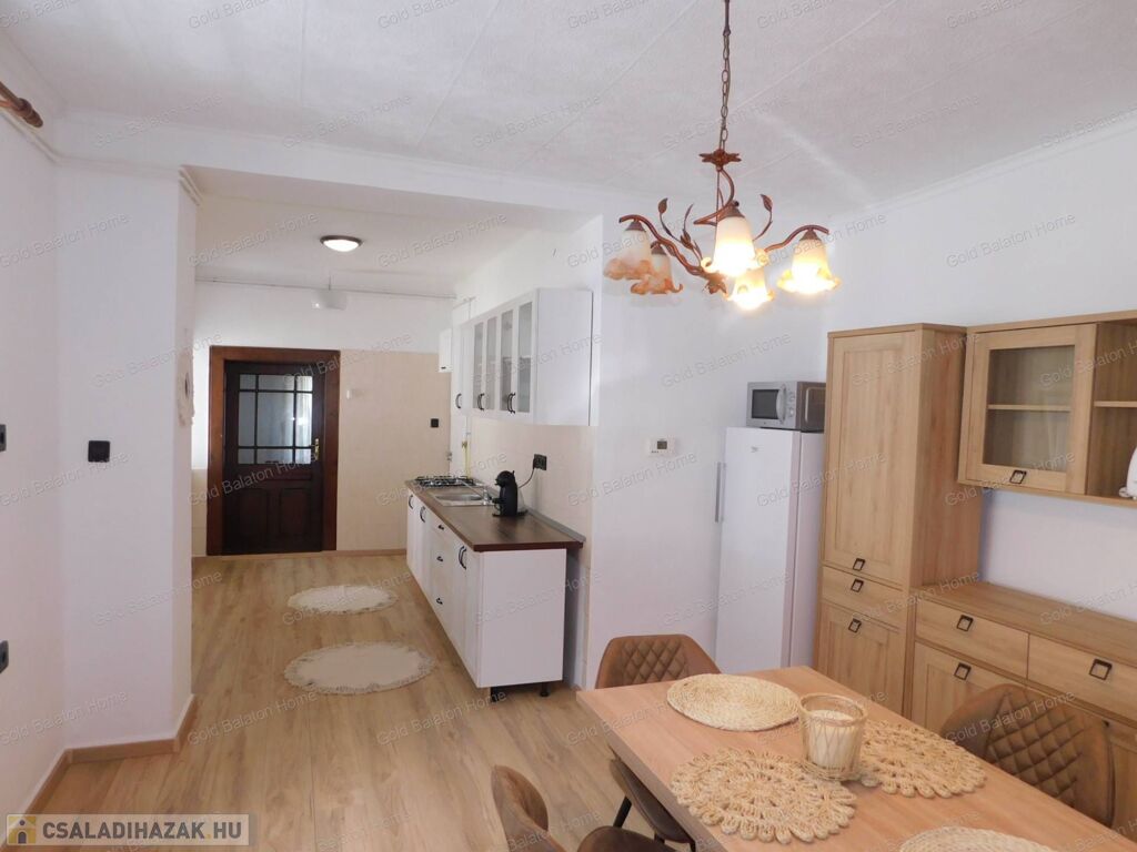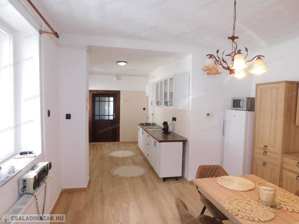 Azonnal költözhető felújított családi ház konyha - étkezővel, 2 hálószobával, külön bejáratú apartmannal, boltíves pincével a Kis-Balatontól 5000 méterre eladó.