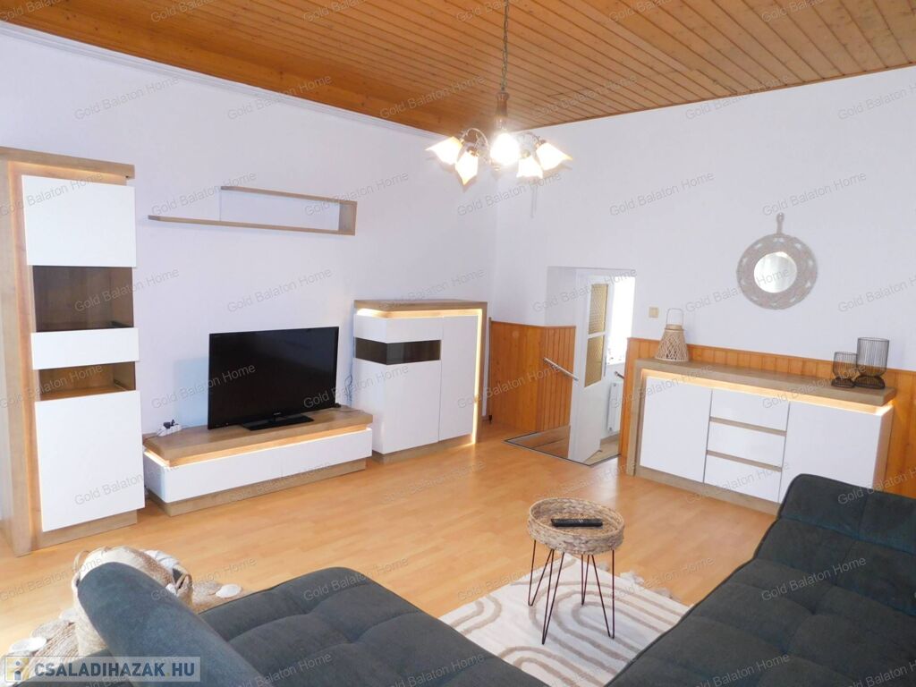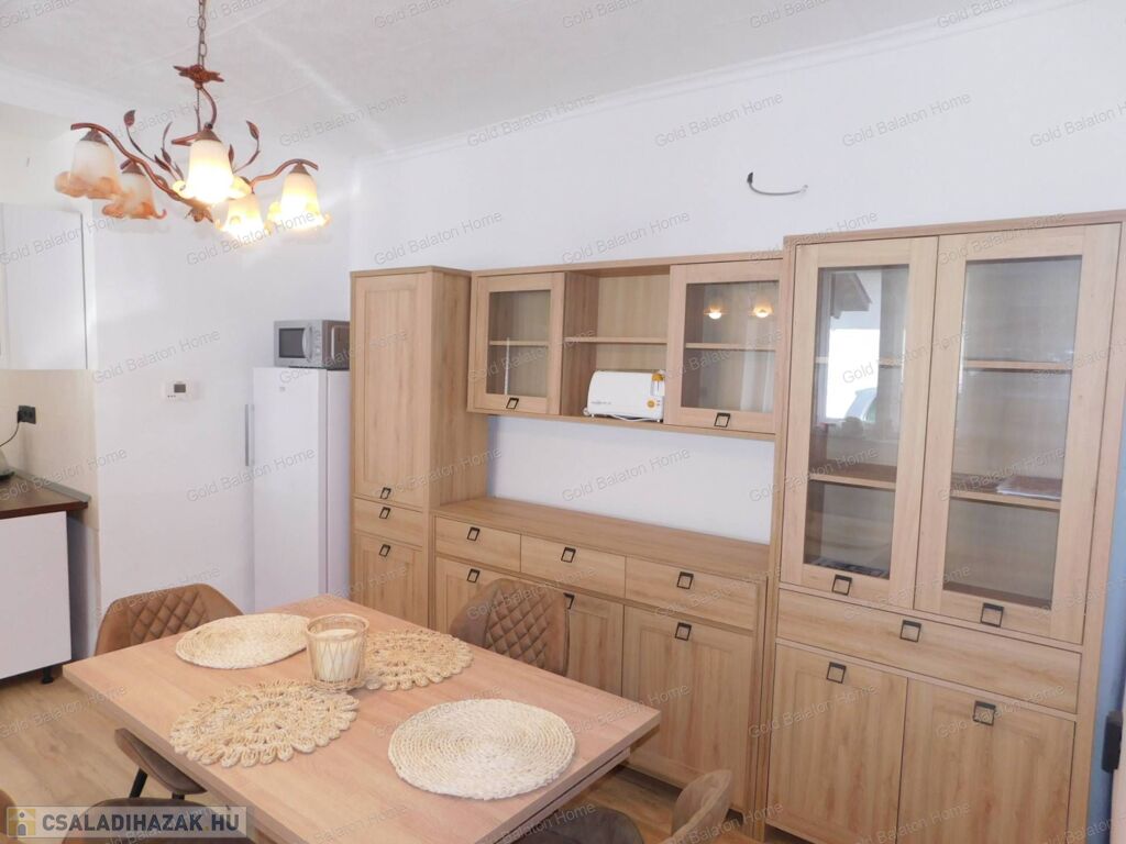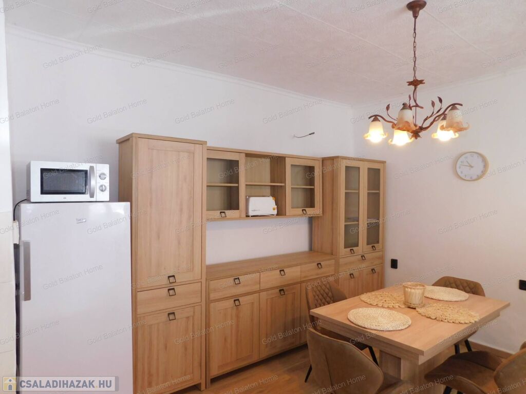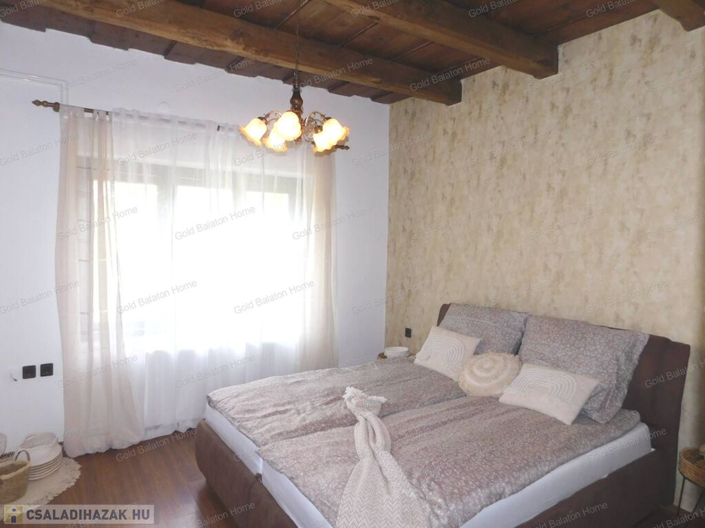 Azonnal költözhető felújított családi ház konyha - étkezővel, 2 hálószobával, külön bejáratú apartmannal, boltíves pincével a Kis-Balatontól 5000 méterre eladó.