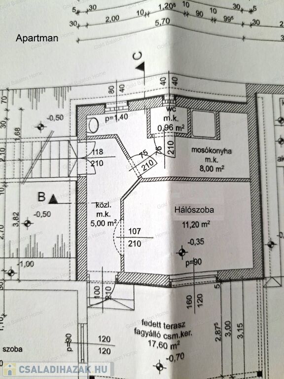 - a külön bejáratú apartman alapterülete 25 nm: közlekedő, hálószoba, mini konyha, zuhanyzó, mosdó, WC, fedett terasz, pincelejáró