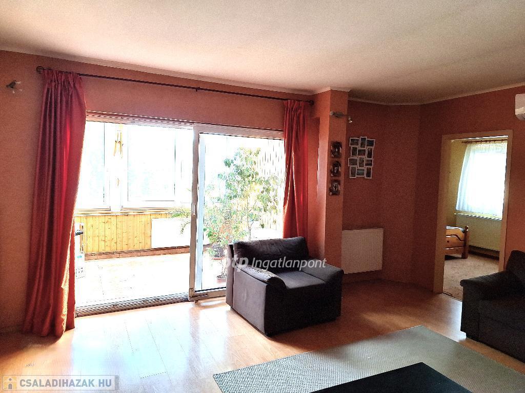 Esztergom, kétlakásos családi ház eladó! Az ingatlan egy 392 m2-es saroktelken fekszik a város családi házas övezetében, Szentgyörgymezőn. Bevásárlási lehetőségtől, Duna-parttól 700 méterre, a Bazilikától 1,5 km távolságra. A két lakás az épület két oldalán külön bejáratból megközelíthető. Mindegyikhez külön kertrész tartozik, melyek akár teljesen le is válaszhatóak, mivel a telek két utcára nyílik. A földszinti lakás 61 m2, két szoba hallos, az emeleti 120 m2, három hálószobás, nagy nappalival, télikerttel. Az épület teljesen alápincézett, ami lehetőséget ad hobbihelyiségek, wellness, vagy műhely kialakítására. Ipari áram bevezetve. Az udvarban található még egy borospince is, és egy egyállásos, automata kapuval ellátott garázs. További 5-6 autó az épületi körüli utcaszakaszon, illetve zárt kapun belüli beállón tud parkolni. Az épület jó állapotú, az 1972-es épületre az emeletráépítés 2004-ben készült. Fűtését gázkazán és fatüzelésű kazán adja. A lakások fogyasztását külön gáz-, villany- vízórák mérik. Az alacsony rezsiköltségű ház két generáció kényelmes, szeparált együttélésére, kiadásra tökéletesen alkalmas. Minden szolgáltatás, iskola, óvoda gyalogosan 10 percen belül elérhető. Az ingatlan megfelel a fix 3%-os Otthon Start Programnak! Irodánk pénzügyi finanszírozással, hitellehetőségekkel kapcsolatban is vevőink rendelkezésére áll. Részletes információkért kérem hívjon!