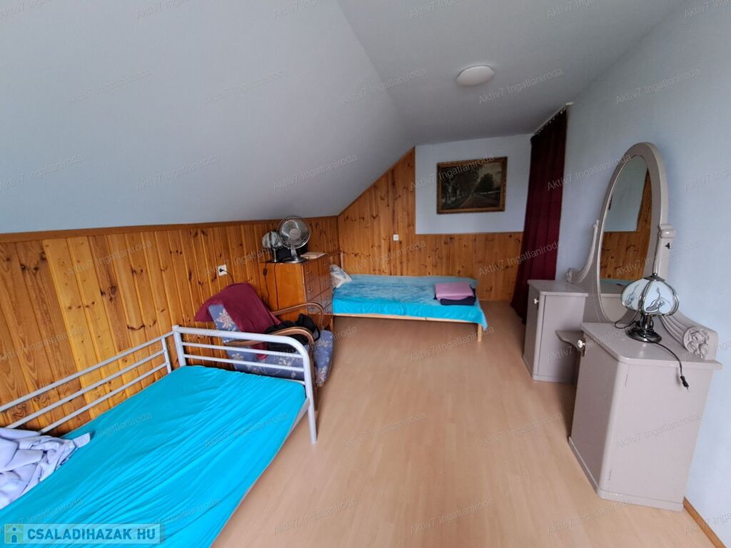 A telek 288nm, szellős, zöld felületes, fás. A főépület mellett épült egy kétállásos garázs (26nm) és van egy kis szerszámos tároló is. Az épület fiatalnak mondható, 2007-ben kapta meg a használatbavételi engedélyt. Műszakilag, statikailag megfelelő állapotú, igény szerinti felújításra alkalmas.Az ingatlan összközműves, fűtése jelenleg konvektoros és van fatüzelésű kandalló, a meleg vizet gázbojler biztosítja. Van kémény, kondenzációs kazán beépíthető. A villamos vezetékek rézből vannak, a nyílászárók szigetelt üvegezésűek, a felső szinten eredetiek.