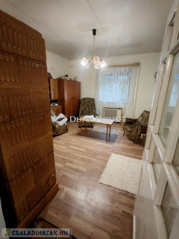 Eladó Pest vármegyében , Farmos településen egy felújítandó 77 nm -es családi ház 1252 nm es telekkel , mely teljesen körbekerített . Az ingatlan vegyes falazatú , cserép fedésű. Elosztása kettő szoba, nappali , előszoba , fürdő+wc. A kis nyári konyha külön épületben helyezkedik el a főépület mellett . Az ingatlan összközműves , a fűtést gázkonvektorok biztosítják . De egy nagyon szép állapotú cserép kályha is beépítésre került . A meleg vizet villanybojler adja. A telken egy fúrt kút is van , mely a tágas kert locsolását biztosítja . A burkolatok laminált padló , pvc , járólap . A nyílászárók régi típusúak , redőnnyel felszereltek. A főépület és a nyári konyha előtt is nyitott terasz található . Az ingatlan mellett gazdasági épület helyezkedik el , melyben tároló , füstölő , nagy pince , ól található. A kert méretéből adódóan , illetve a talaj minősége akár egy kis családi gazdaság fenntartását is biztosítja. A telken van szőlő , dió , bodza , körte , birsalma , meggy .Az ingatlan lokációja nagyon jó . A vasútállomás 5 perc sétára van . Farmos központi része 8-10 perc gyalogosan. Itt pedig Posta , közért , gyógyszertár , iskola , óvoda megtalálható.