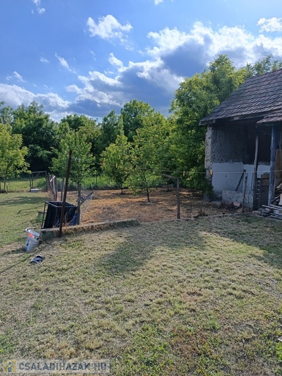 A kertben van egy kis ház és állattartásra alkalmas helyiségek. Kerti csap, csatornarendszer.