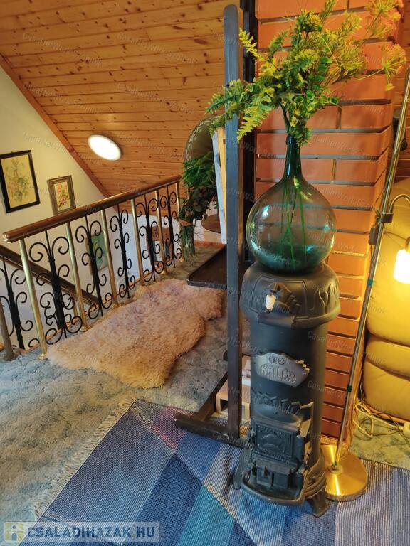 • a fűtésről a kertből megközelíthető helyiségben elhelyezett gázkazán gondoskodik, emellett cserépkályha is rendelkezésre áll,