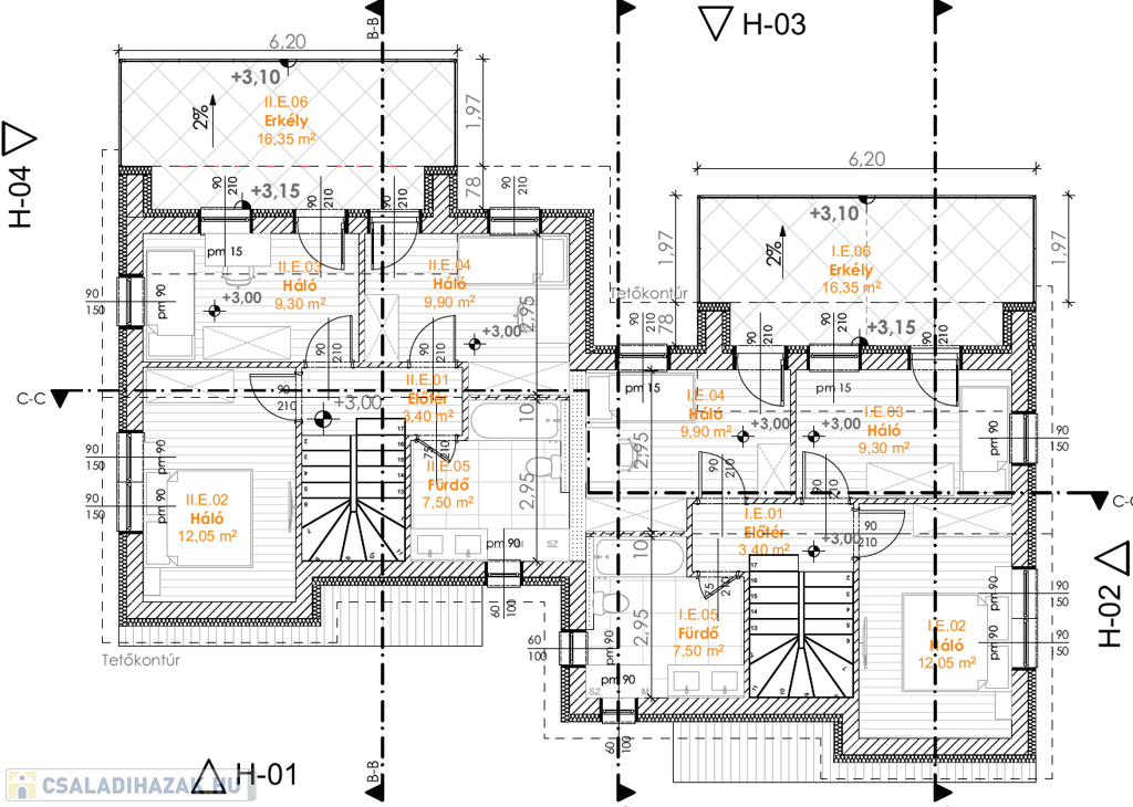 - minőségi, kezelt fa tetőszerkezet betoncserép fedéssel