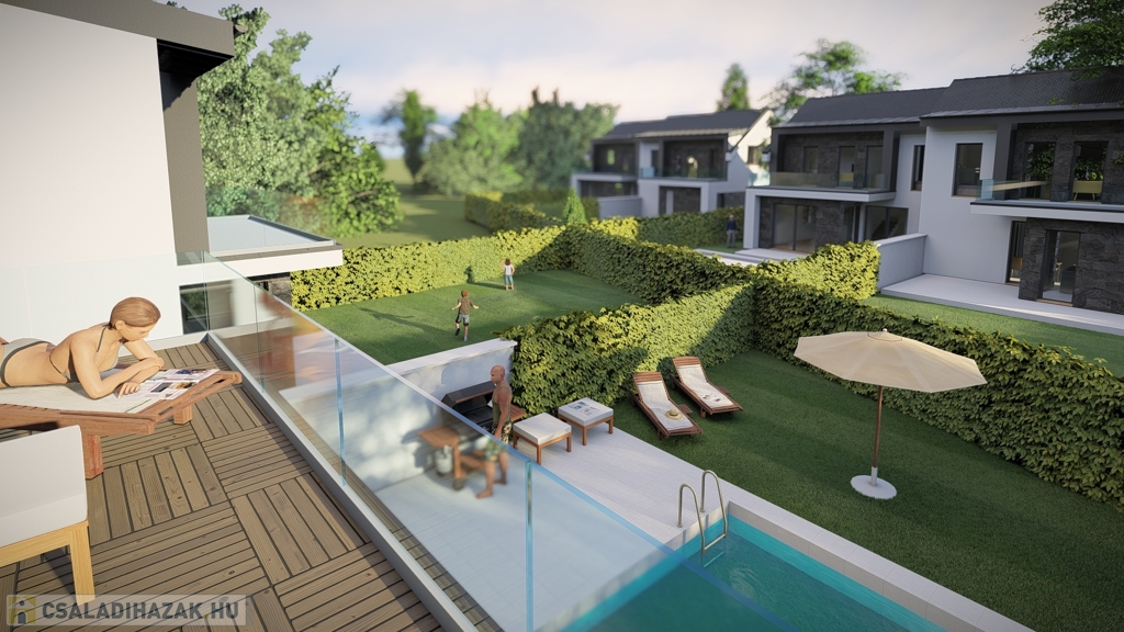 A minőségi anyagokból épült, A++ besorolású, korszerű családi otthon 4 hálószobával, emeletenként egy-egy fürdőszobával, földszinti amerikai-konyhás nappalival, 30 nm-es terasszal és elektromos kapuval zárt kerttel várja első lakóit. A zárt, sorompón át megközelíthető, portaszolgálattal rendelkező lakópark kizárólag lakók számára igénybe vehető, díjmentes wellness szolgáltatást nyújt a közös költség keretén belül. Két medencével, hozzájuk kapcsolódó vendéglátóegységgel, fitnesz és szépségipari szolgáltatásokkal biztosít színvonalas pihenést a családok számára.
