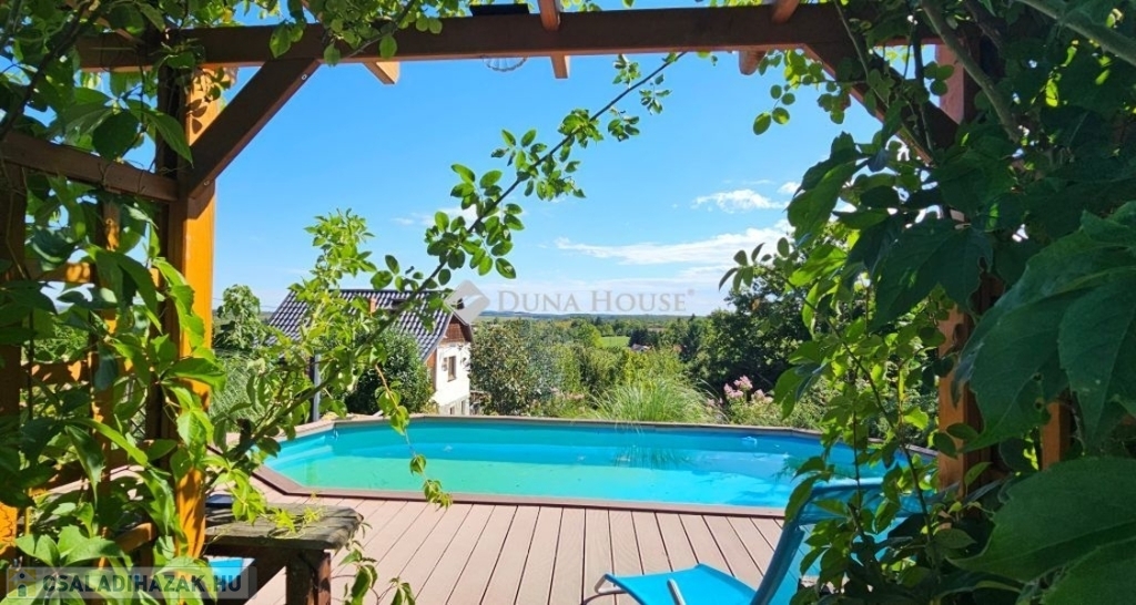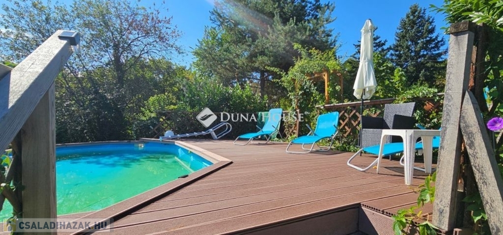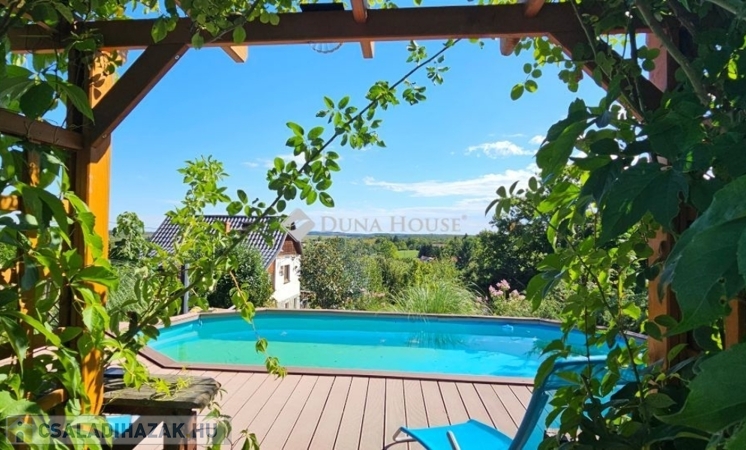 Az udvaron egy 7,6*3,6 m-es medence is helyet kapott, mellette örökpanorámás napozóterasz és kerti tusoló is kiépítésre került.