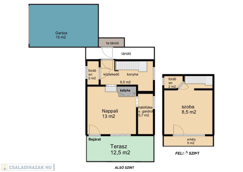 Az ingatlanhoz tartozik egy pince, amely kiváló tárolási lehetőségeket biztosít, valamint 2 tároló és egy 15 m2-es garázs!