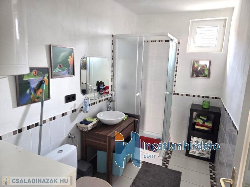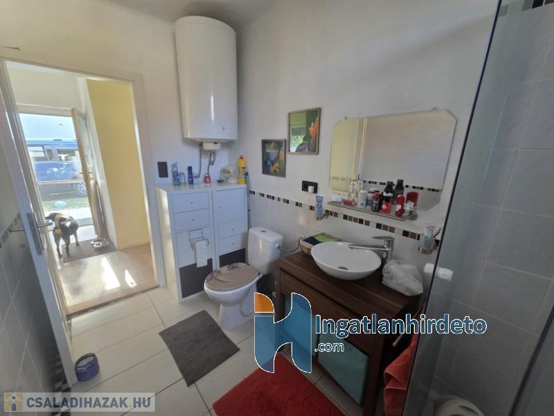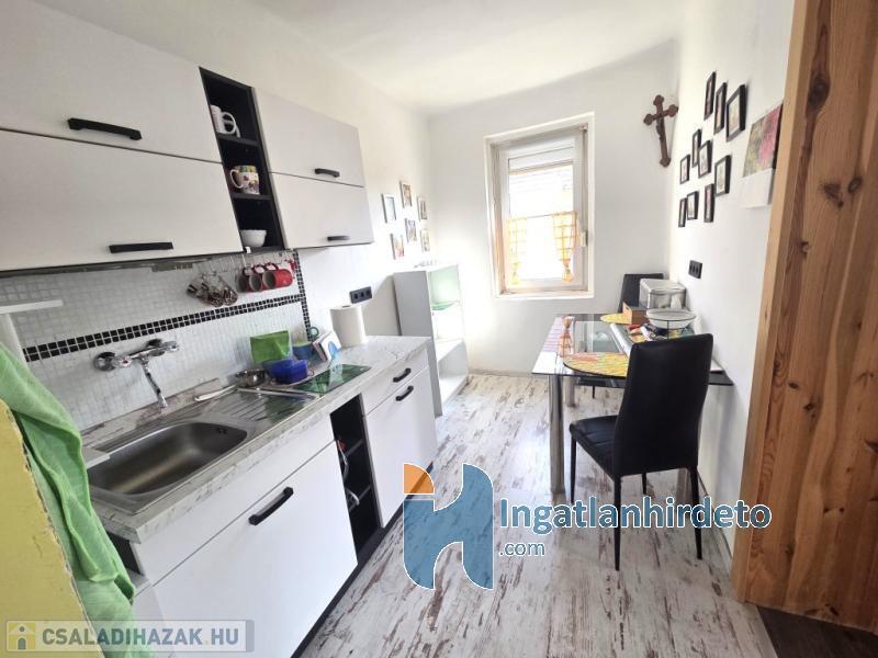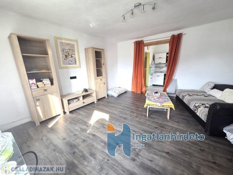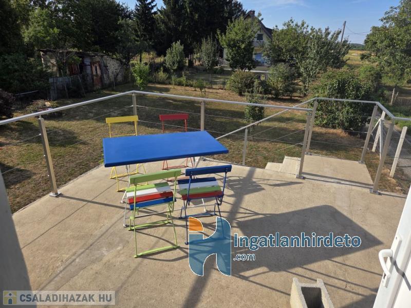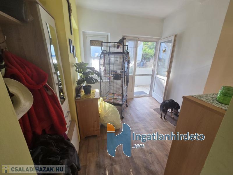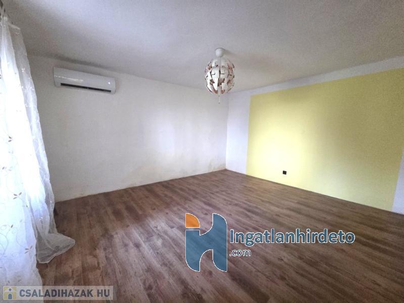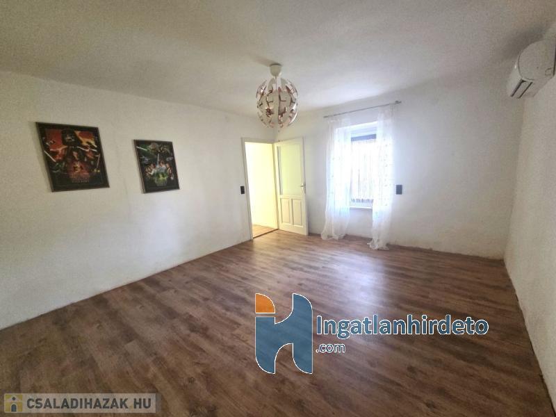 Elhelyezkedése: Belterület Tájolása: Dél-nyugai tájolású Állapota: Használt - felújított Komfort besorolása: összkomfortos Építési éve: 1930 Alapterülete: 76 m2 Telekterülete: 906 m2 Szobák száma: 2 + 1 szoba Felújított: Felújított Felújítás éve: 2022 Felújítás során elvégzett munkák: Festés, Villanyrendszer csere, Vízrendszer csere, Csempe csere, Járólap csere, Parketta csere, Fűrdőszobai szaniterek cseréje, Utólagos vízszigetelés, Tetőfelújítás, Tetőszigetelés, Nyílászárók cseréje, Hőszigetelt nyílászárók beépítése Közművek: Gáz, Víz, Villany, Csatorna Gázellátás: Vezetékes Vízellátás: Vezetékes víz Melegvíz-ellátás: Villanybojler Áramellátás: 230V/380 V Fűtés módja: Egyéb Fűtés típusa: Egyéb Homlokzat állapot: Jó Építési mód: Tégla, Kő, Vályog Tető formája: Magas Tető anyaga: Cserép Parkolási lehetőség: Telken Kilátás: Utcafronti kilátás Jellemzői: Csendes környék, Jó közlekedés, Redőny, Légkondicionáló, Udvari terasz, Kert, Kerítés, Zöldterület, Jó közbiztonság, Beépített tetőtér Energetikai besorolás: H Egyéb jellemzők: Terasz, Melléképület, Pince Tv, Internet: Kábeltévé, Internet Terhelések: Tehermentes ingatlan Eladásra vonatkozó információk: Az ár tartalmazza a teljes berendezést, Azonnal beköltözhető