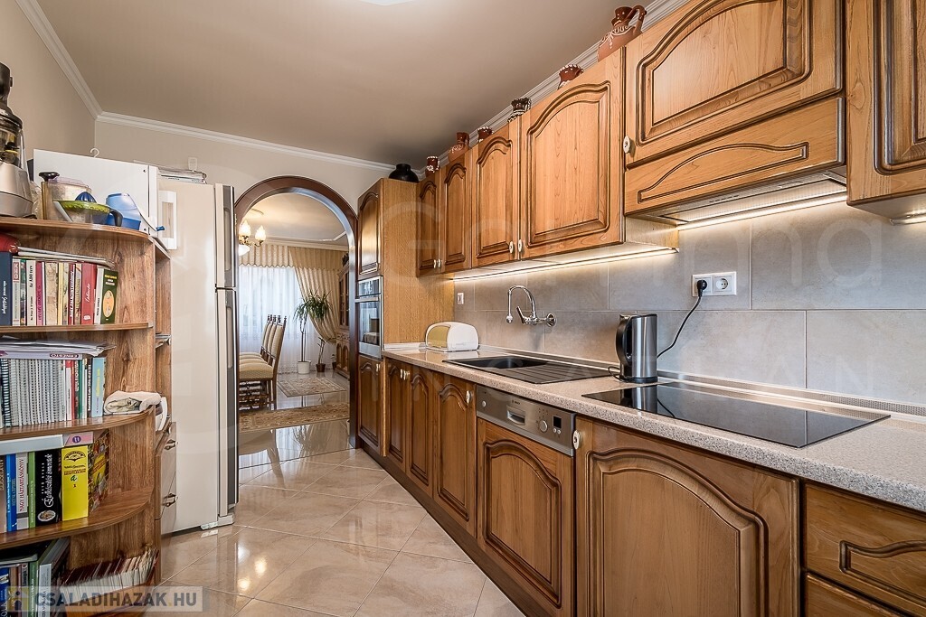 - Hall, tágas étkező és modern konyha kamrával