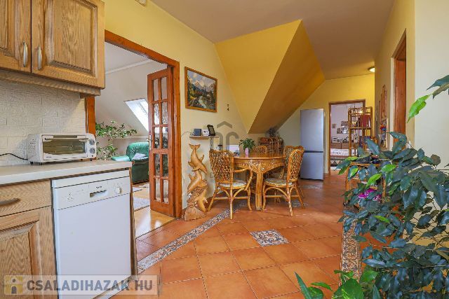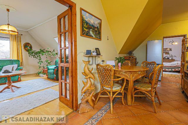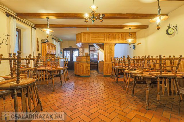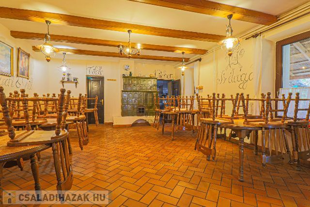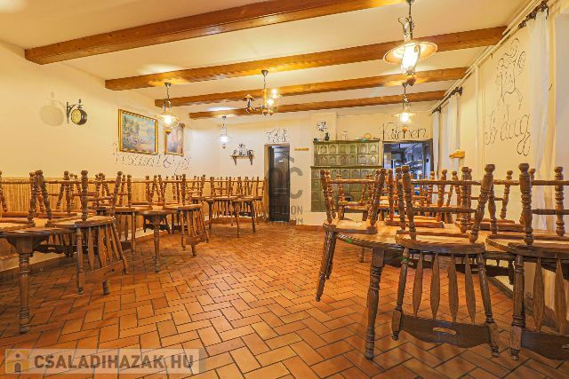 Az ingatlan a település központjában, ámde békés, nyugodt helyen található. A 210 m2- es épület egy 1525 m2- es telken áll. A földszinten egy évtizedeken keresztül óta jól működött étterem található, kerthelyiséggel, nagy, térkövezett parkolóval az utcán. Az emeleten került kialakításra a 83 m2- es külön bejáratú lakrész, melyben 2 hálószobát, világos nappalit, konyha- étkezőt, fürdőszobát, külön toalettet találunk. Az udvaron fedett gépkocsibeálló, pince és tároló áll rendelkezésre. A fűtést gáz kazán biztosítja. Amennyiben Ön az ingatlant kizárólag, mint családi ház képzeli el, az étterem lakrésszé alakítható, a felső szinttel összenyitható, illetve 2 generáció összeköltözésére tökéletes megoldás a jelenleg is meglévő külön bejáratos kialakítás. Nagy ház, nagy telken egy igazán jó helyen!