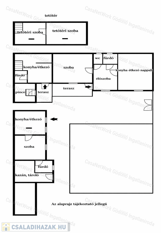 Az épületek helyiség elosztásával kapcsolatban bővebb információ az alaprajzon található.