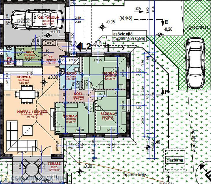 Parkolás szempontjából is ideális: a garázsban 1 autó, valamint az előtte kialakított felszíni beállón további 1 gépkocsi számára biztosított a parkolás.