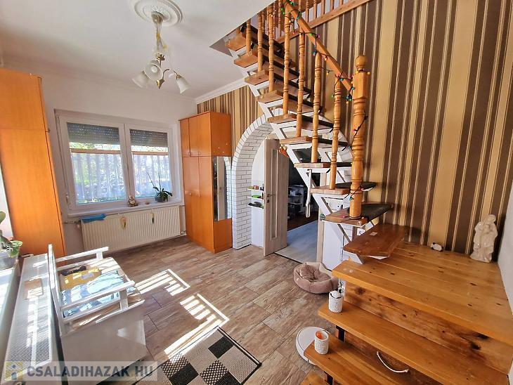 A ház alsó szintje 1978-ban, a felső az 1990-es években épült, folyamatosan karbantartott, jó állapotú. Részben réz villanyvezetékekkel, 3×16 fázissal rendelkezik. A víz és villany közös, a gáz részben külön rendszerről működik. D-i fekvésének köszönhetően egész nap világosak a terek.