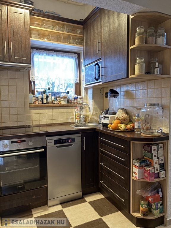 A gondozott nagy méretű kertben levő kerti búbos kemence, és a sütögető kiváló helyszíne a kikapcsolódásnak.