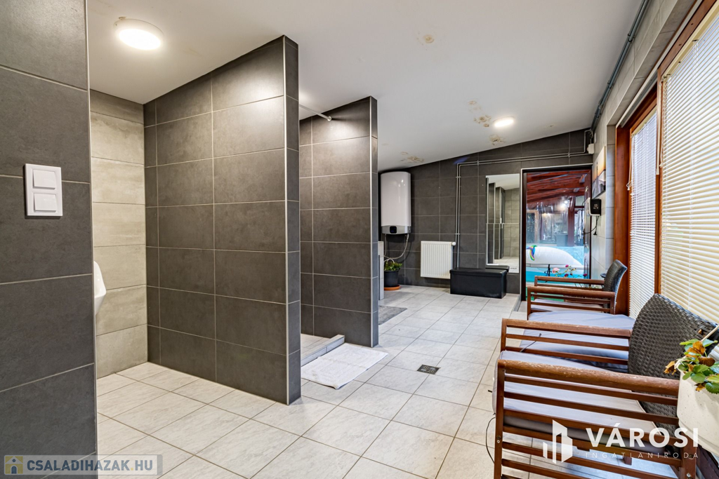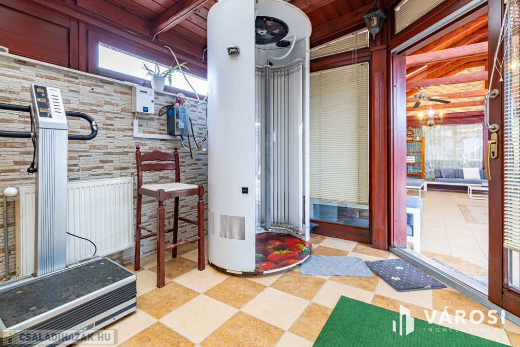 A rendezett udvarban több autó kényelmesen parkolhat, az elektromos kapun keresztül belépve pedig igazi privát oázis várja: fűtött medence, jacuzzi, szauna, szolárium, kerti sütögető, napozóágyak és egy hatalmas fedett terasz, amely egy teljesen felszerelt kerti konyhát és hangulatos pihenősarkokat rejt. Mindez olyan érzést nyújt, mintha minden nap nyaralna!