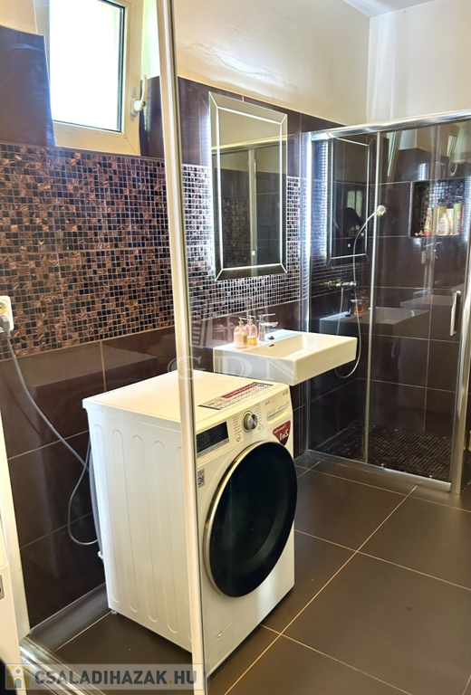 Extrák: riasztó, biztonsági kamera, távvezérlésű elektromos redőny a teraszhoz tartozó ajtókon. A műanyag nyílászárók szúnyoghálóval vannak ellátva. Elektromos nagykapu. Szauna, jakuzzi.