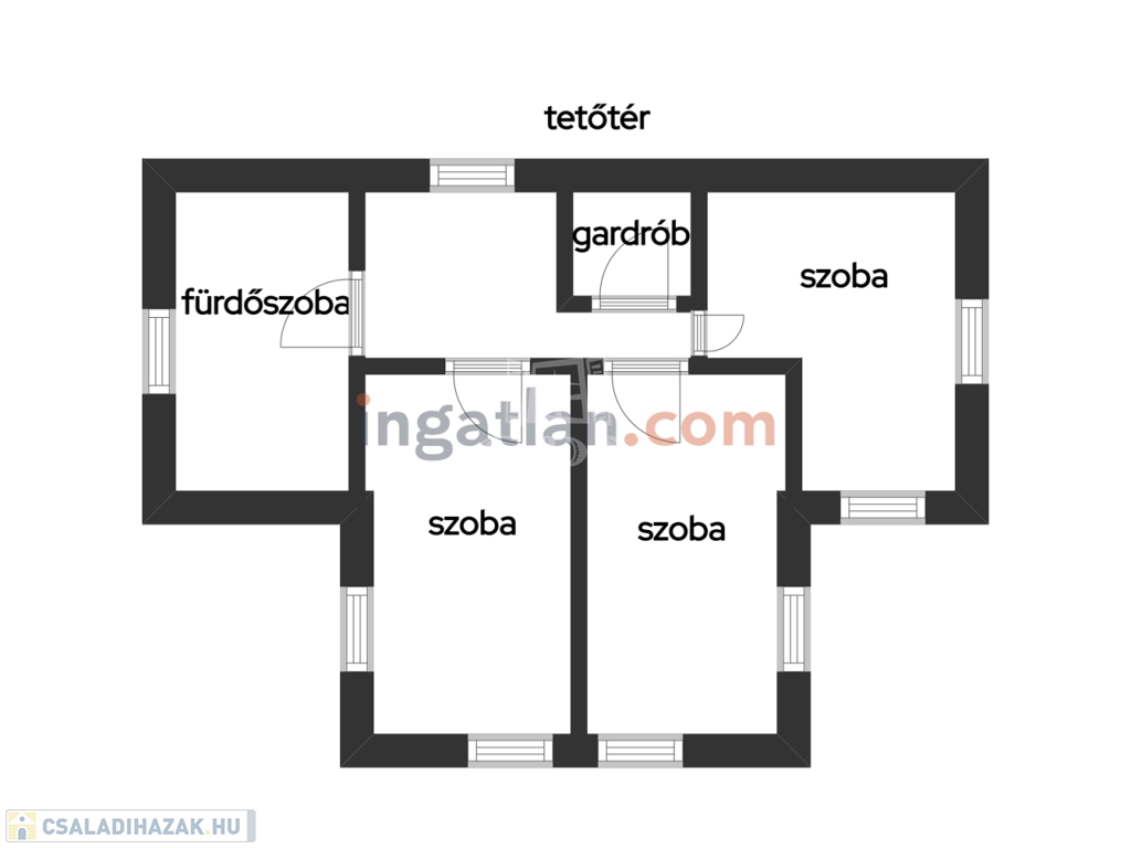 Tetőtér: két tágas hálószoba, egy félszoba, gardróbszoba,