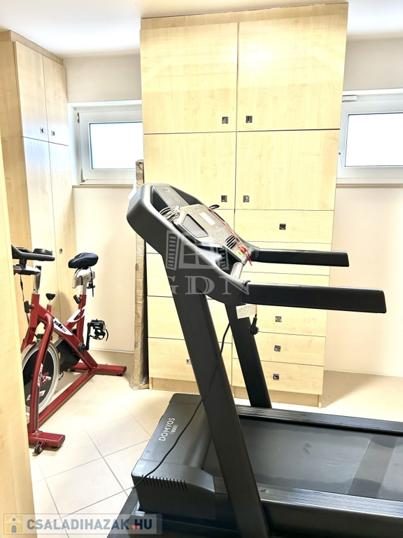 Pinceszint: előtér, szauna, hozzá tartozó zuhanyzó, különálló wc, konyha, folyosó, gardrób szoba, kondi terem, és egy világos nagy szoba.