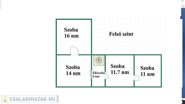 Elosztását tekintve a földszinten: 2 előszoba, 3 szoba, konyha, fürdőszoba és wc található. Az emeleten 1 előszoba és 4 szoba található.