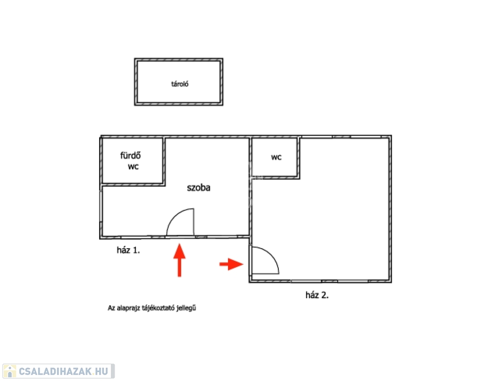 Az első ház egy nagy méretű nappaliból, és egy fürdőszobából tevődik össze. Amásdik ház egy nagy méretű légtér egyben. Az összes hasznos alapterület 145 nm, és 3 méteres belmagassággal bír. Tégla szerkezet, cserép tetővel.