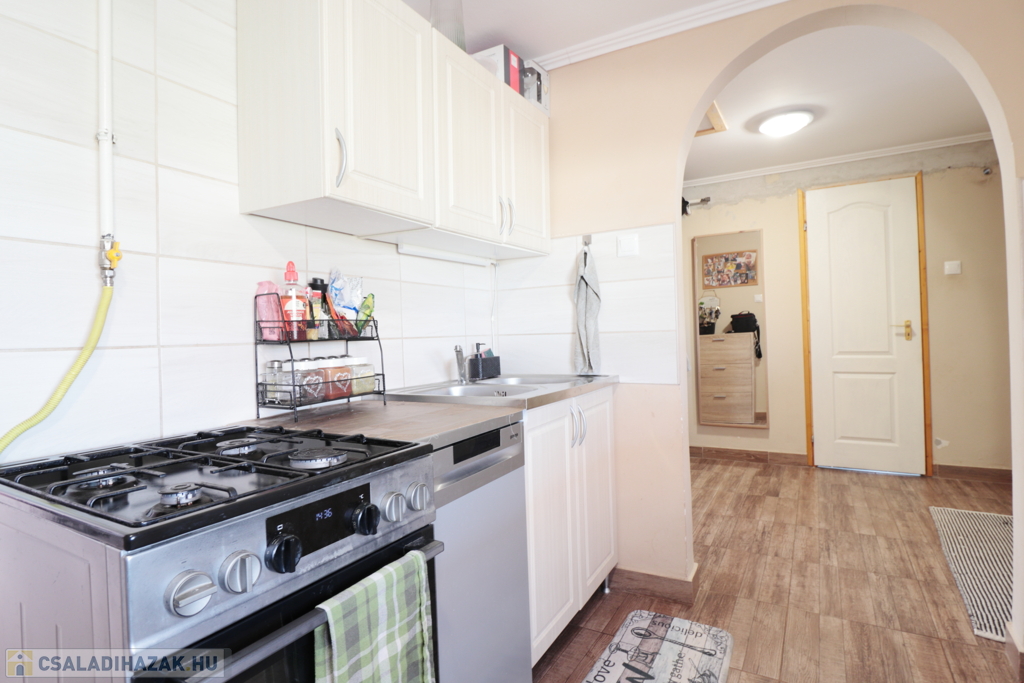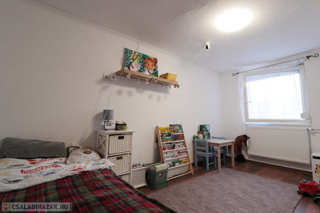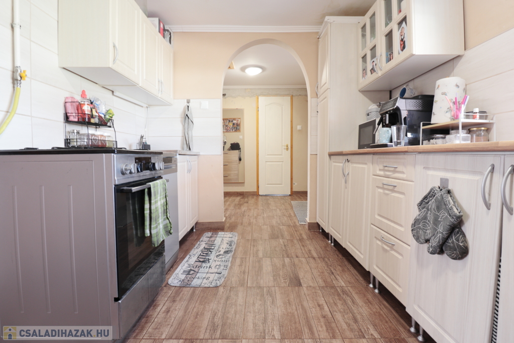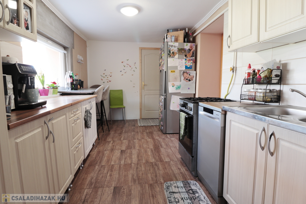 A ház jó elosztású, kényelmes szobákkal rendelkezik, tágas, napfényes terekkel, így családok számára ideális otthon. Az ingatlanban modern, gépesített konyha található szép burkolatokkal.