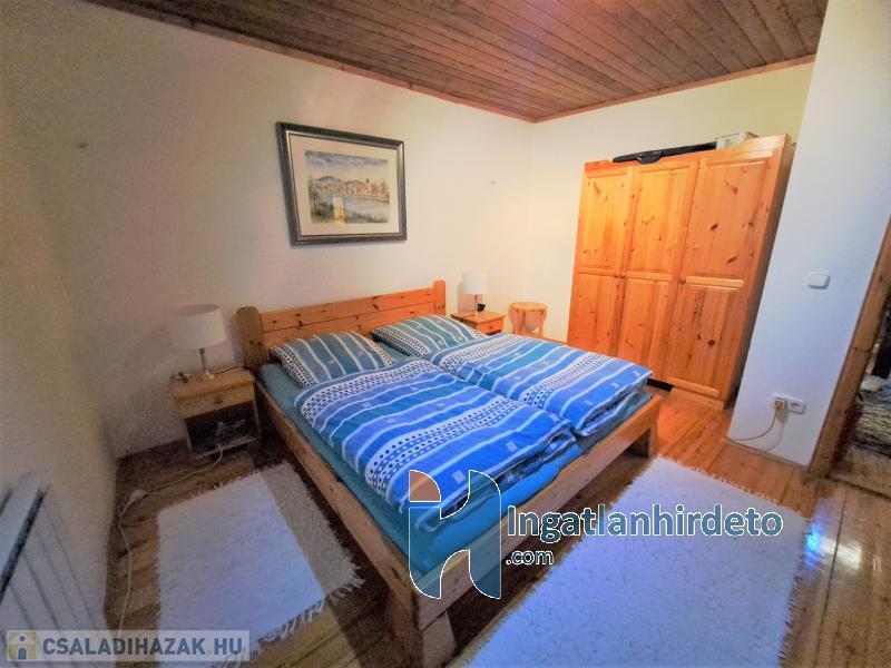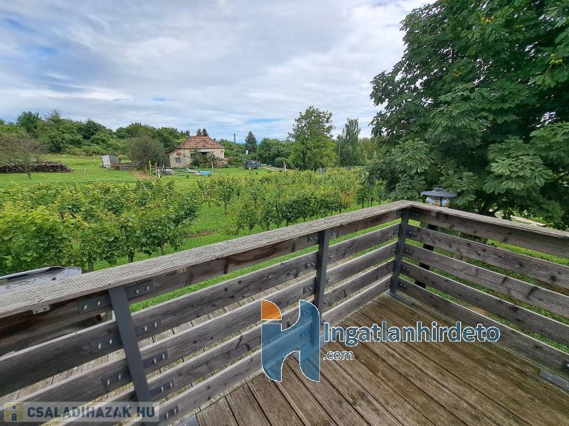 Elhelyezkedése: Zöldövezet Tájolása: Keleti tájolású Állapota: Jó Komfort besorolása: összkomfortos Építési éve: 2000 Alapterülete: 142 m2 Telekterülete: 6 354 m2 Szobák száma: 3szoba Közművek: Gáz, Víz, Villany Gázellátás: Tartályos Vízellátás: Kútról Melegvíz-ellátás: Villanybojler Áramellátás: 230V Fűtés módja: Gáz, Fa, Egyéb Fűtés típusa: Központi gázkazánnal, Cserépkályha Homlokzat állapot: Jó Építési mód: Tégla Tető formája: Magas Tető anyaga: Cserép Parkolási lehetőség: Telken Kilátás: Hegyi panoráma Jellemzői: Csendes környék, Redőny, Étkező, Udvari terasz, Amerikai konyha, Beépített konyhabútor, Kert, Szauna, Zöldterület Egyéb jellemzők: Terasz, Pince