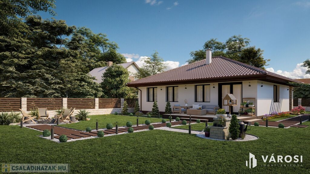 -bruttó 122nm-es családi ház (nettó 96nm-es) 3 lakószobával, fürdőszobával, külön wc-vel, háztartási helyiséggel, közlekedővel és amerikai nappalis konyhával.