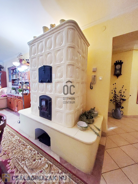 Fűtése 2 éves modern SAUNIER DUVAL kazánról, radiátoros hőleadással működik. A nappaliban igazi remekmű, egy gyönyörű cserépkályha is ad meleget téli bekuckózásokhoz.