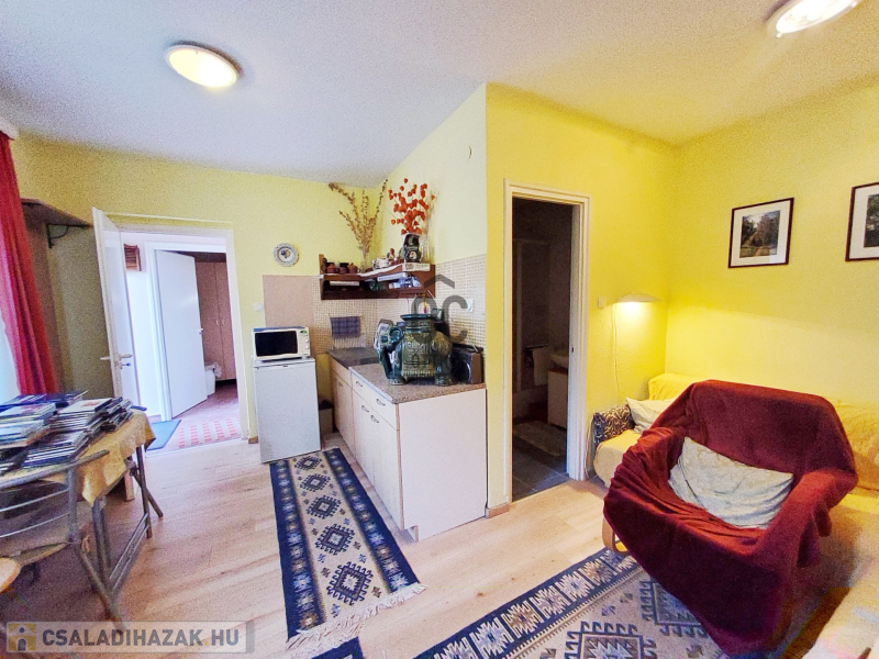A kisebb lakrész 27,8 m2, áll egy konyha-étkező-nappaliból, zuhanyzós fürdőszoba -WC-ből és egy hálószobából. Déli fekvése, világos, napos helységei vidámságot tükröznek.