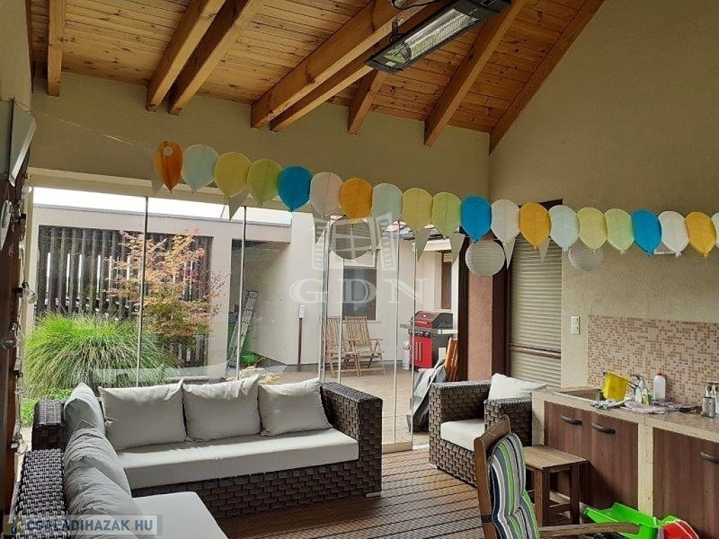 Eladó a Velencei-tó szomszédságában Gárdony-Dinnyés településen, újépítésű övezetben egy gyönyörű, összesen 275 nm-es, egyszintes, összkomfortos családi ház.