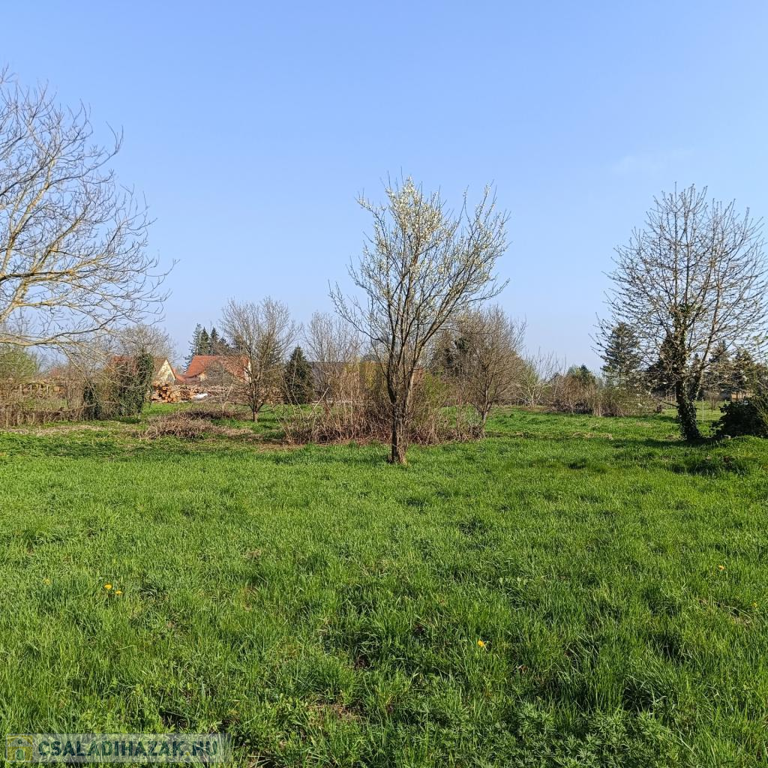 A telek 2634 m2 nagyságú, termő gyümölcsfákkal és fenyővel beültetett.