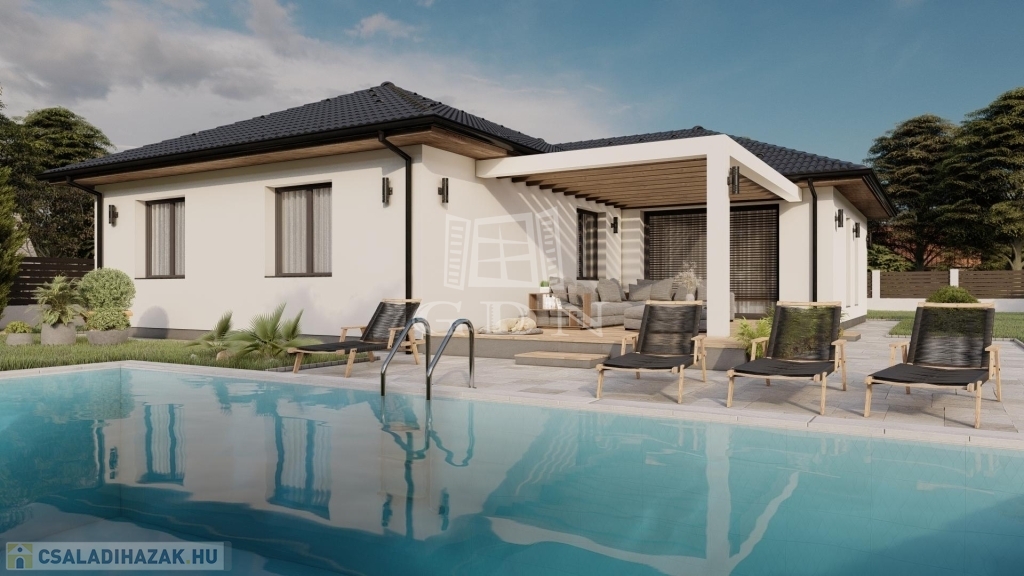 Típusházunk a mai kornak megfelelő tervezéssel készült könnyűszerkezetes családi ház, mely megfelel a legnagyobb energetikai követelményeknek és besorolása lehetővé teszi a kamattámogatott hitel, CSOK és egyéb kedvező finanszírozás igénybevételével történő megépítését. Az épület tervezésénél fő szempont volt a nagyobb családok számára is ideális helyiség kiosztás.