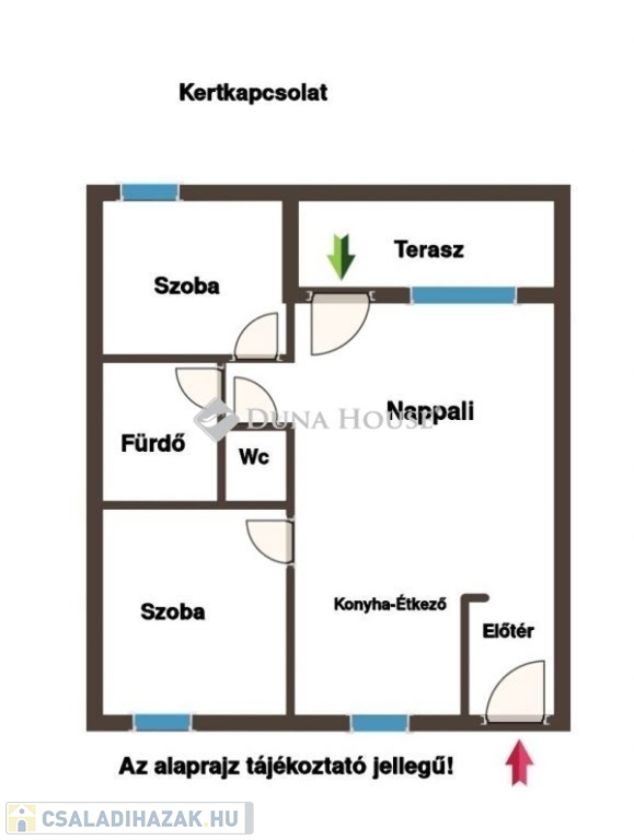 Amerikai konyhás nappali étkezővel- 2 külön nyíló hálószoba-fürdőszoba és külön mellékhelyiség-előszoba-parkolási lehetőség zárt udvarban-saját terasz+50 m² kertkapcsolat-gázcirkó fűtés...