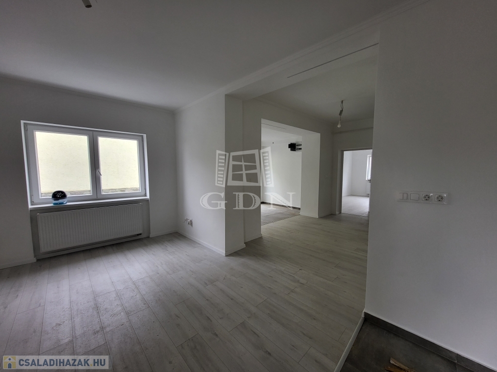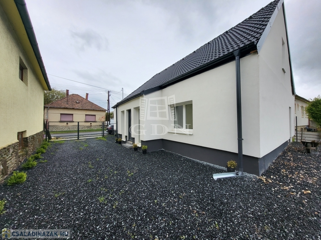 Dinamikusan fejlődő településen, Gencsapátiban felújított ház várja új tulajdonosait. Az ingatlan 1009 m2-es telken helyezkedik el. Érdekessége, hogy még egy ház építhető a területre. Az épület 88 m2 nagyságú, rendkívül jó elosztású, tágas, világos terek jellemzik. Műszakilag és esztétikailag megújult ingatlanban kettő ideális méretű szobán kívül nappali, étkező, konyha, fürdőszoba került kialakításra. A házba érkezőket nagy méretű előszoba fogadja. A felújítás során a víz-lefolyó rendszer, villanyhálózat, fűtésrendszer, hideg-meleg burkolatok cseréje is megtörtént. Fűtéséről, meleg vízellátásáról Ariston kondenzációs kombi gázkazán gondoskodik, radiátoros hőleadással. Ablakai fokozottan hang-és hőszigeteltek. Bejárati ajtaja több ponton záródó, biztonsági ajtó. A beltéri ajtók is újak. Homlokzatára, lábazatára szigetelés került. A háztető is megújult, az ereszcsatornák is cserélve lettek. Az ingatlan azonnal költözhető. Ha bővebb tájékoztatást szeretne, vagy megtekintené az ingatlant, kérem keresse irodánkat.