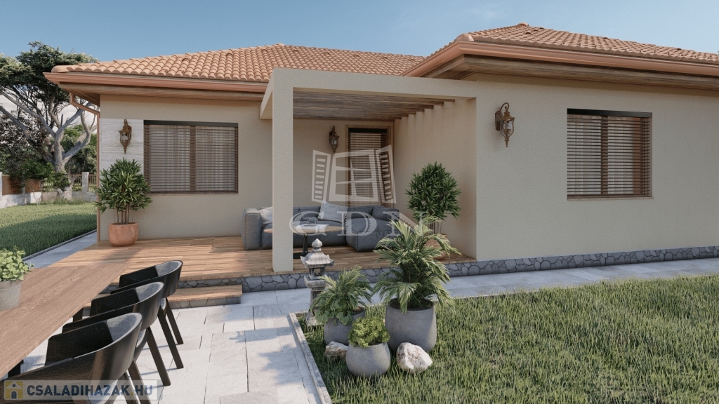 Típusházunk a mai kornak megfelelő tervezéssel készült könnyűszerkezetes családi ház, mely megfelel a legnagyobb energetikai követelményeknek és besorolása lehetővé teszi a kamattámogatott hitel, CSOK és egyéb kedvező finanszírozás igénybevételével történő megépítését. Az épület tervezésénél fő szempont volt a nagyobb családok számára is ideális helyiség kiosztás.